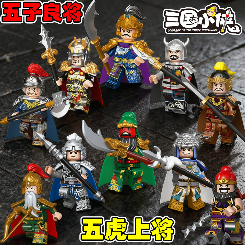 三国五虎上将赵云关羽张飞马超黄忠刘备积木人仔儿童拼装便宜玩具