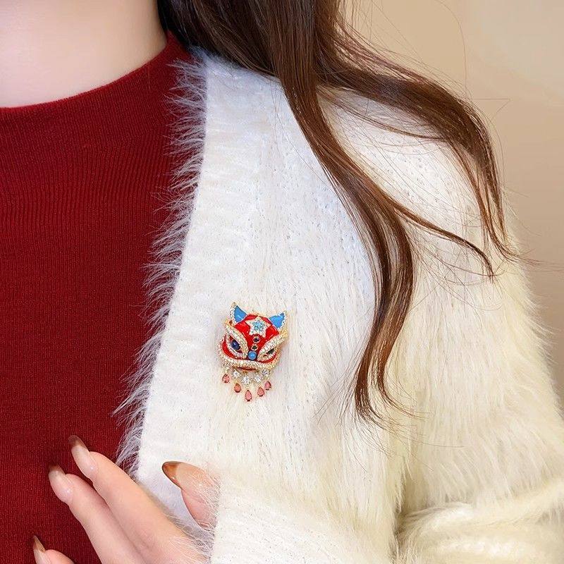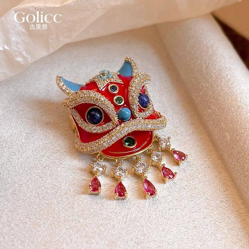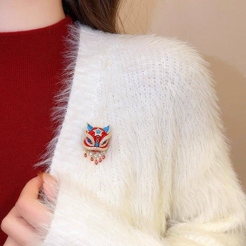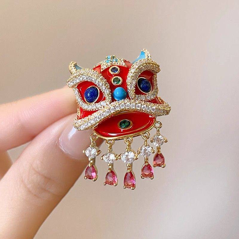 新年红色国潮醒狮胸针女款高级感轻奢大衣胸花新中式别针配饰秋冬