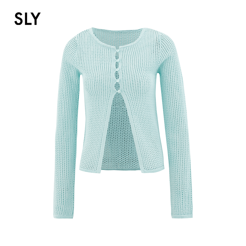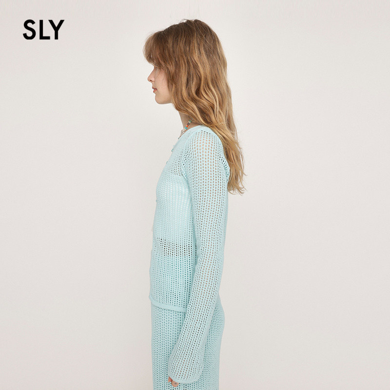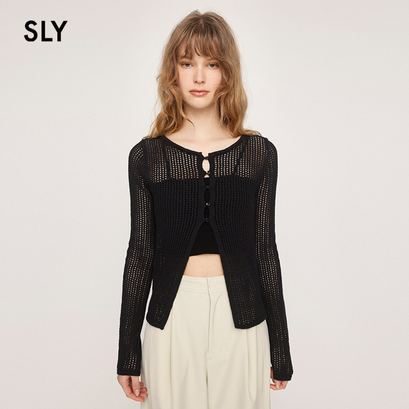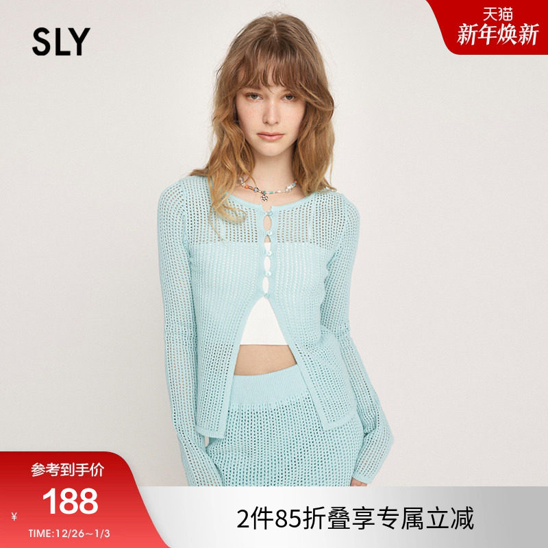 SLY 夏季新品甜美日系叠穿编织网格针织开衫女030HSY70-2670