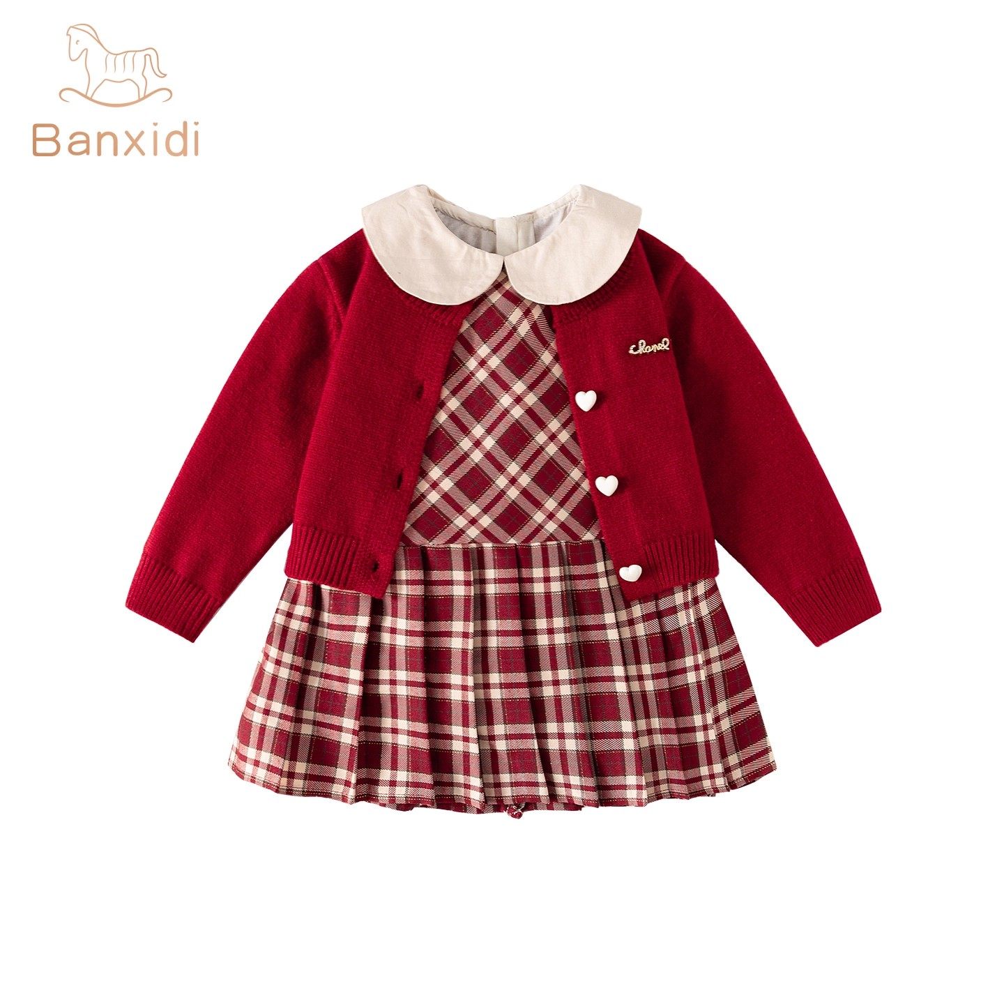 班喜迪女童连衣裙秋冬新款儿童公主裙女宝宝周岁礼服冬季开衫裙子