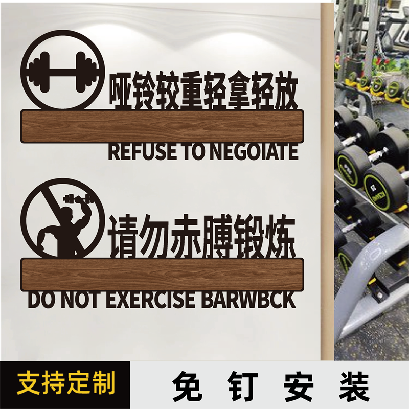 健身房标识牌标语哑铃杠铃轻拿轻放提示牌动感单车标牌器材器具归位轻拿轻放贴纸健身房墙面装饰指示牌警墙贴