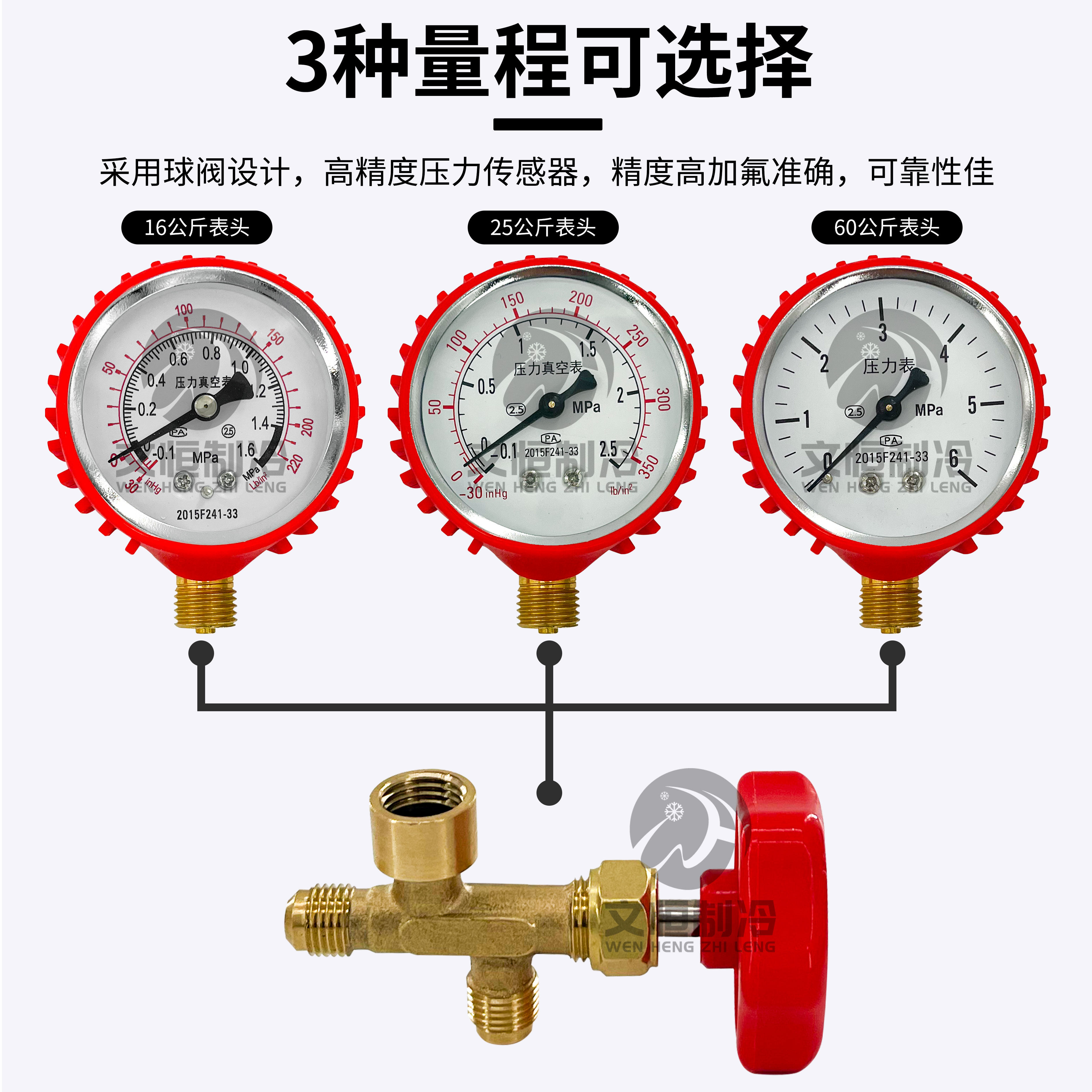 空调加氟工具套装加氟压力表空调冰箱维修压力表加氟三通加氟表阀