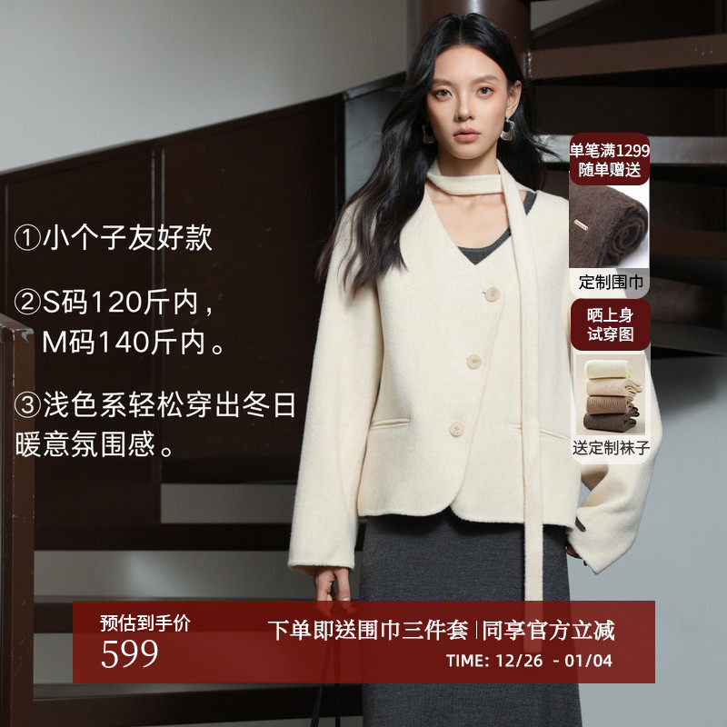 反季清仓秋冬双面羊绒大衣女简约高端气质款小个子西装毛呢外套