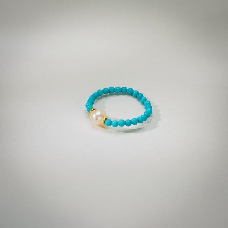 淡水珍珠 小绿松石珍珠戒指弹力 时尚珍珠指环手饰
