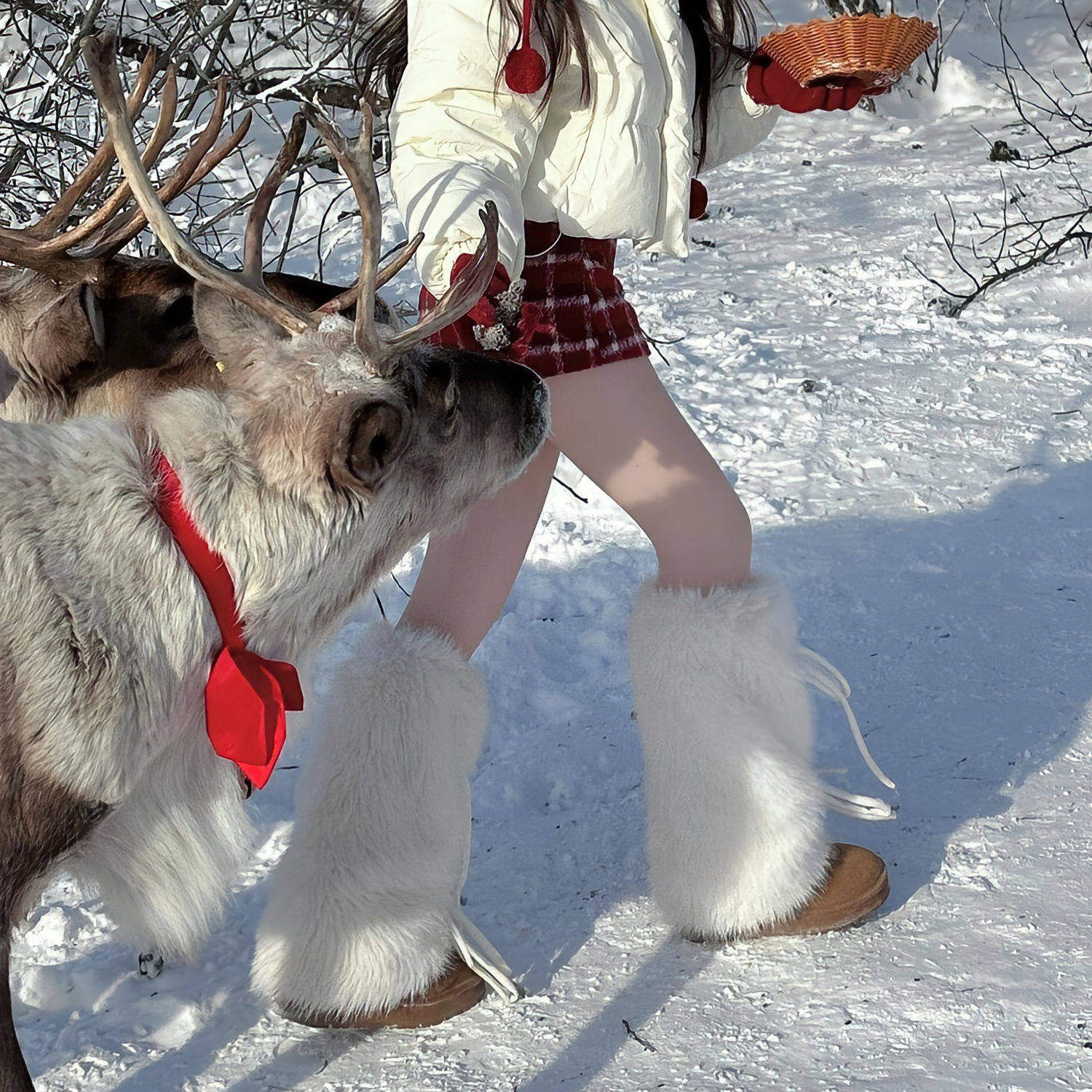 亚比风辣妹y2k白色毛毛袜套亚文化加厚保暖蝴蝶结绑带毛绒腿套袜