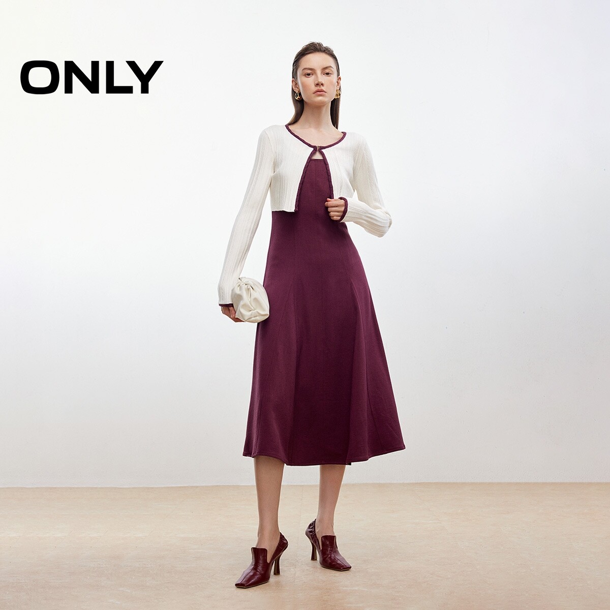 ONLY2025春季新款优雅裙子针织上衣拼接背心裙中长裙套装连衣裙女