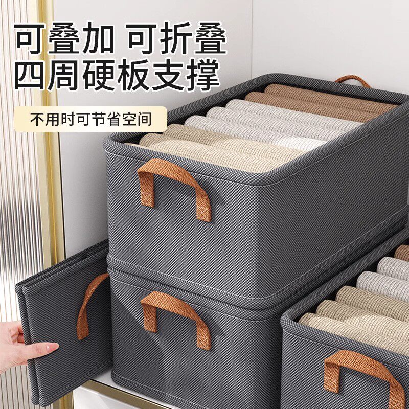 拍1发4衣服收纳筐神器布艺装衣物衣柜分层收纳箱家用框裤子整理盒