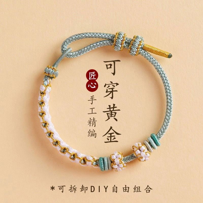 半成品桃花diy手绳可穿黄金转运珠手链编绳粉色手工编织串珠红绳