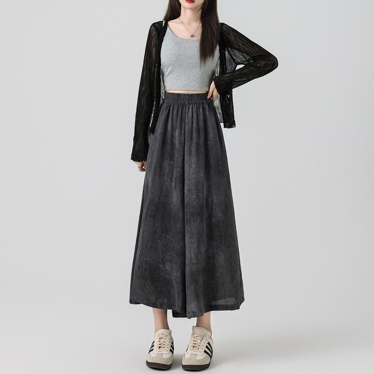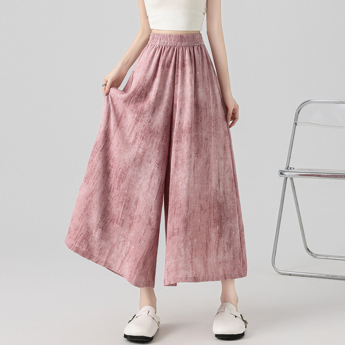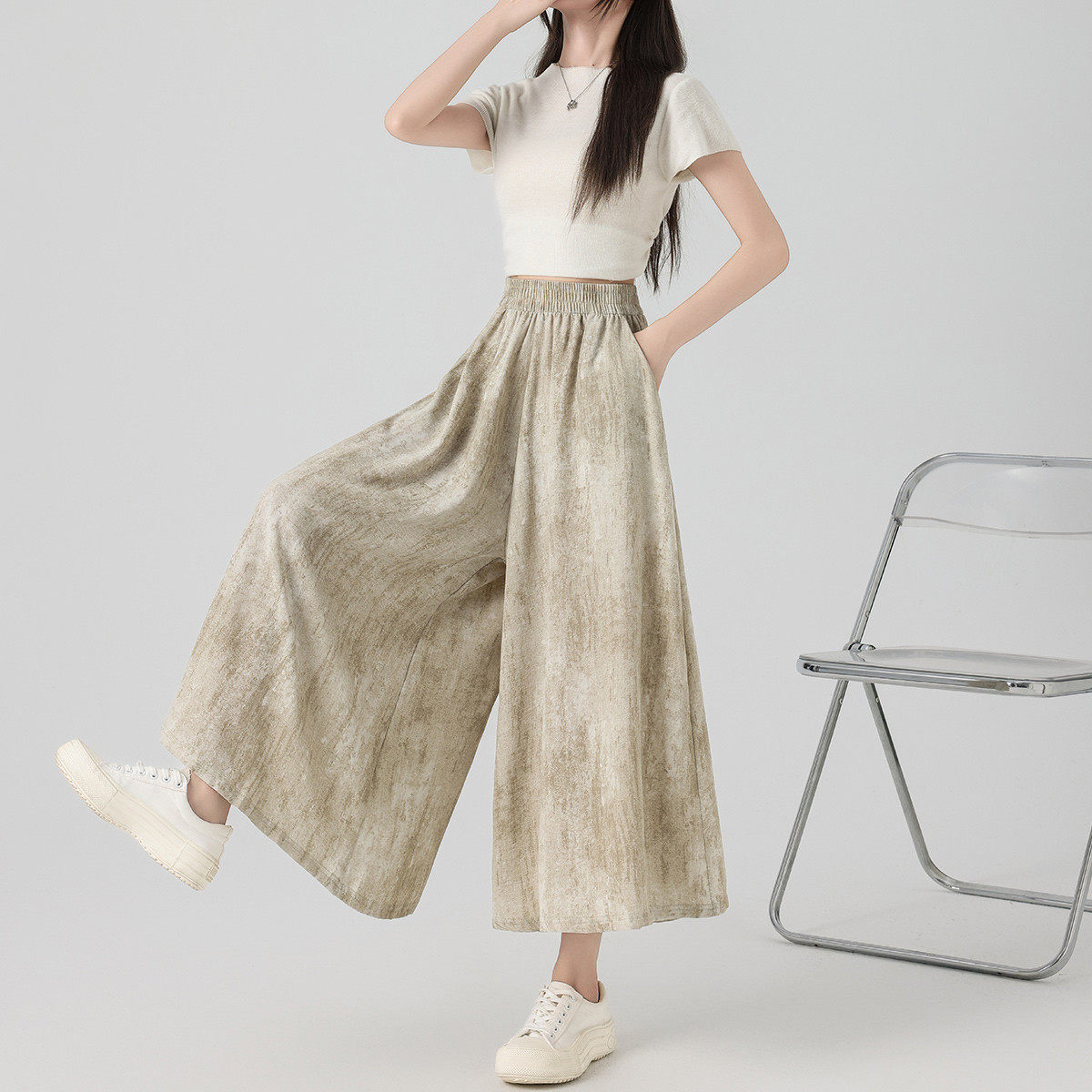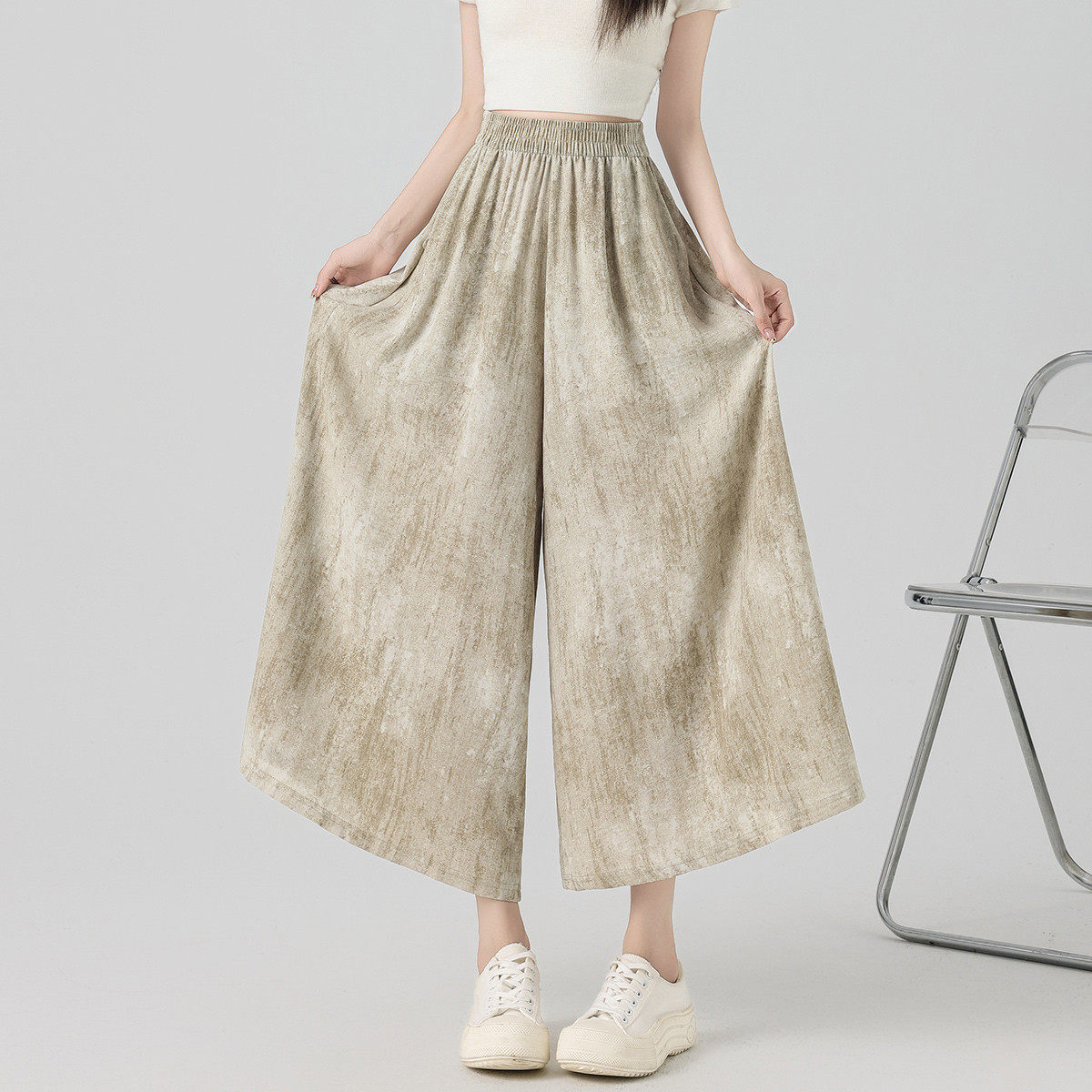 one more扎染口袋裙裤2026新款夏季薄款冰丝垂感休闲轻薄裤九分裤