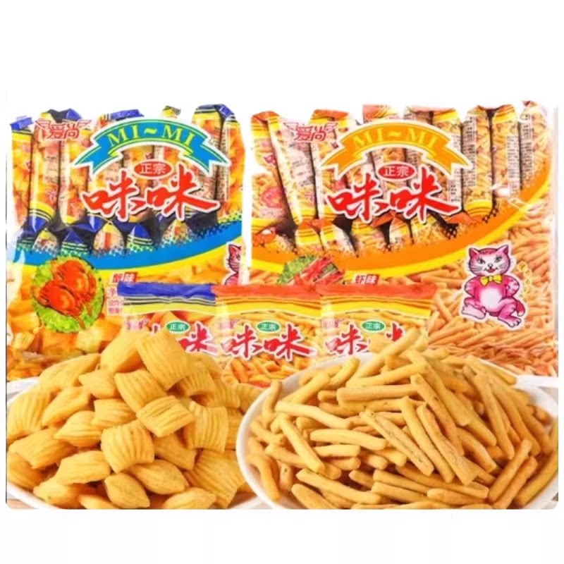爱尚咪咪虾条虾味薯条蟹味粒小包儿童零食批发膨化大礼包解馋小吃