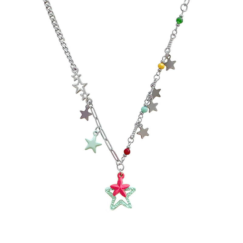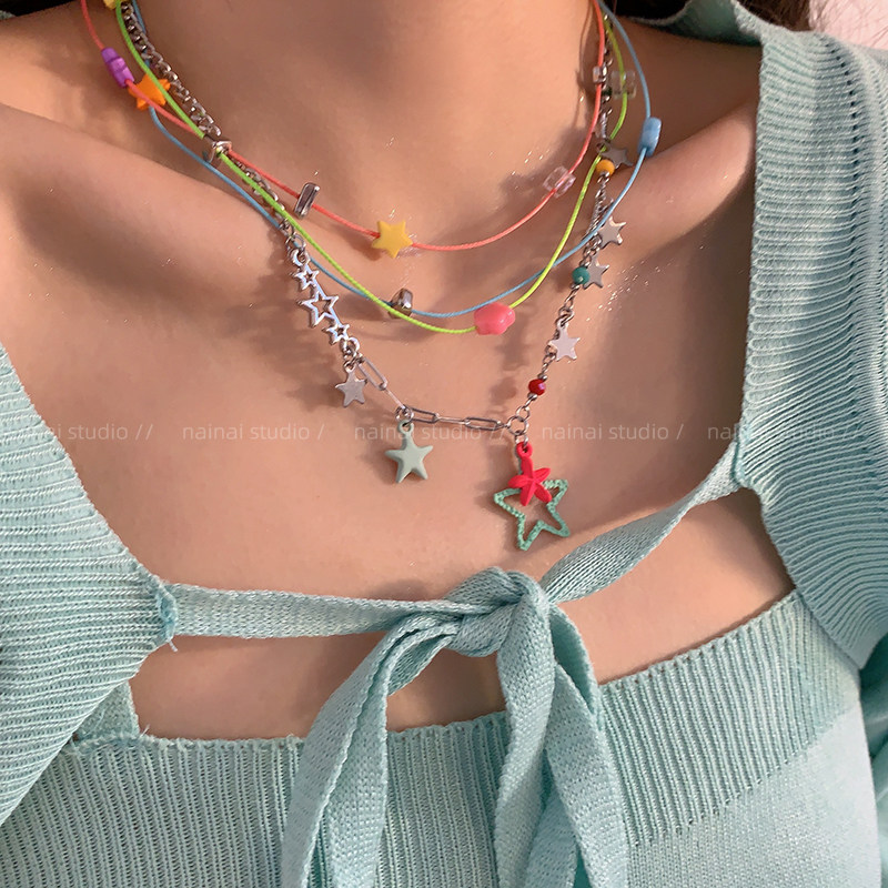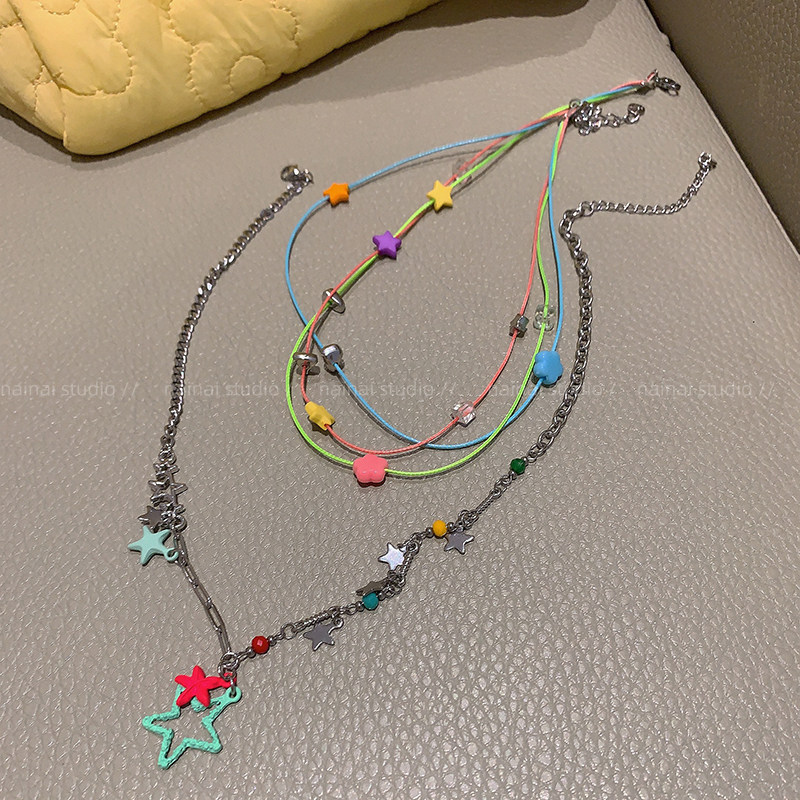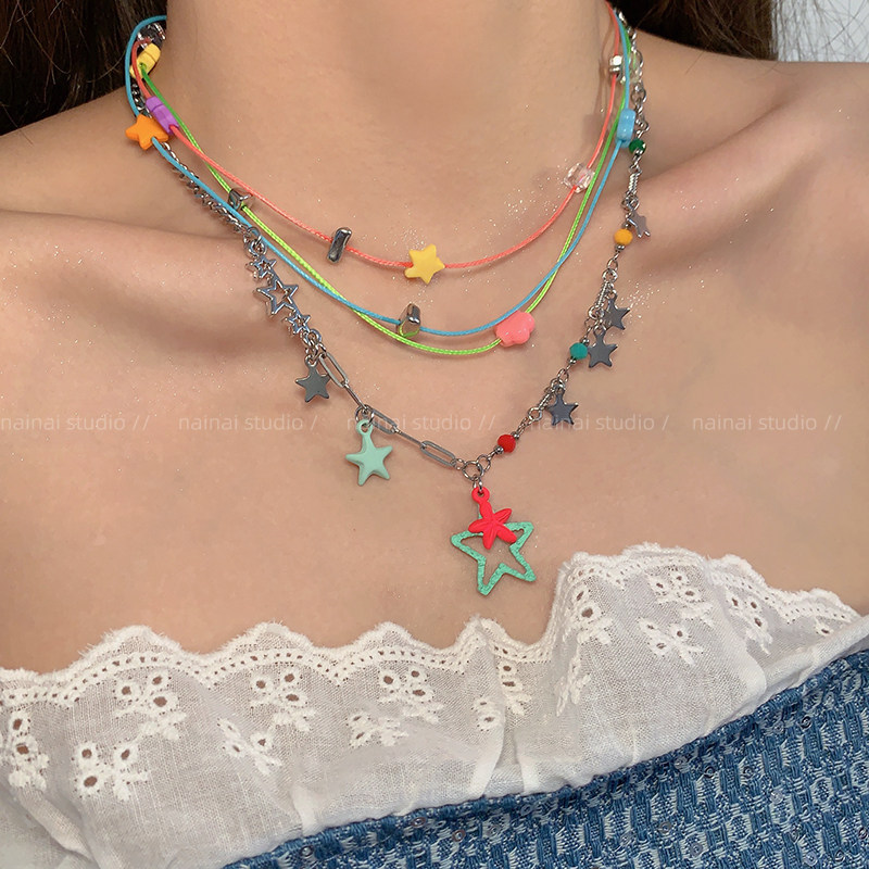 多巴胺女孩!星星双层项链流苏甜酷少女锁骨链撞色小清新y2k颈链