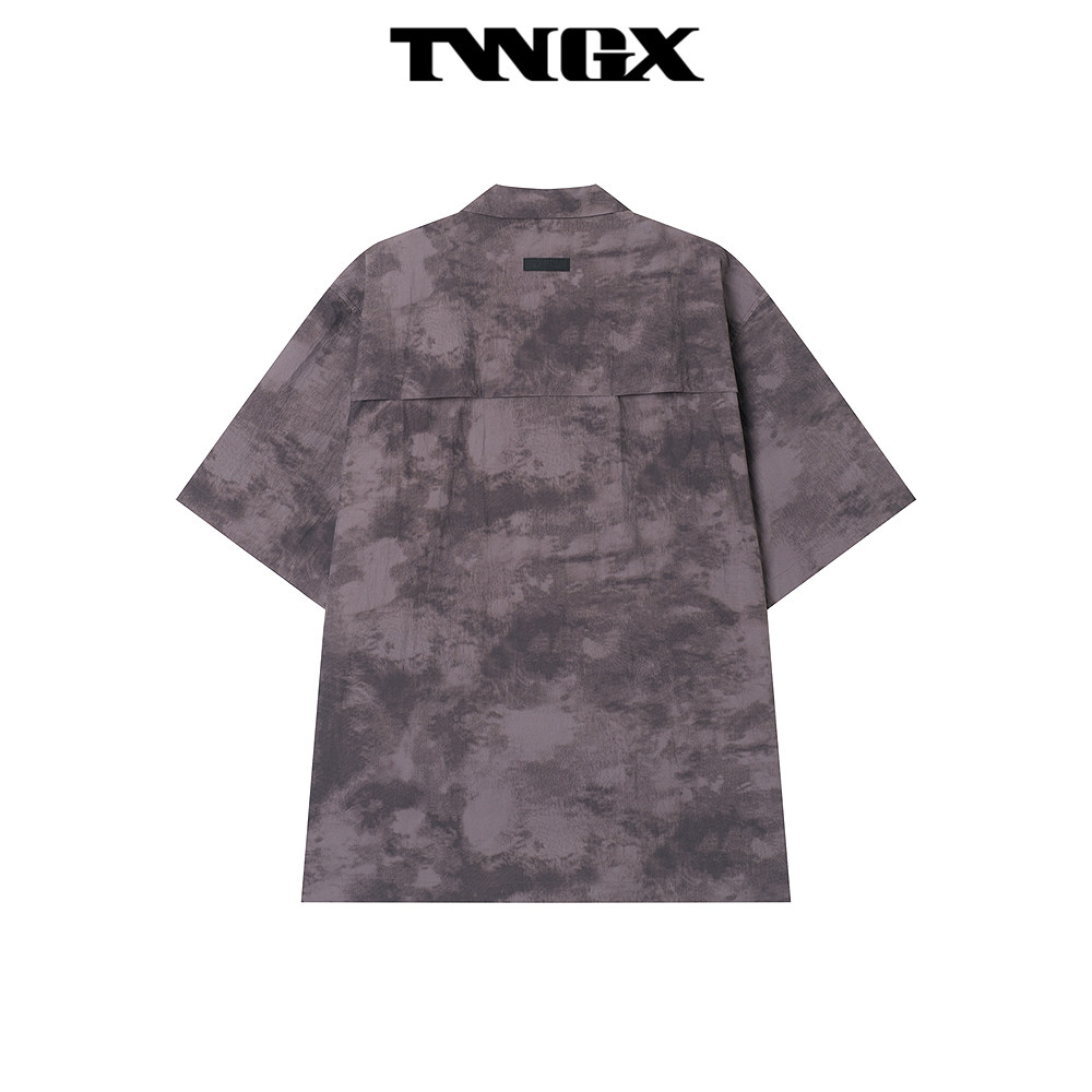 小熊男装款型休闲轻薄防晒满印肌理短袖衬衫