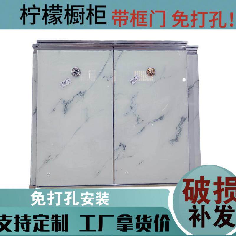 橱柜门钢化玻璃晶钢门带框整体橱柜厨房灶台免打孔门板柜外贸