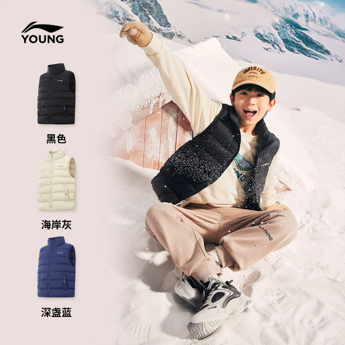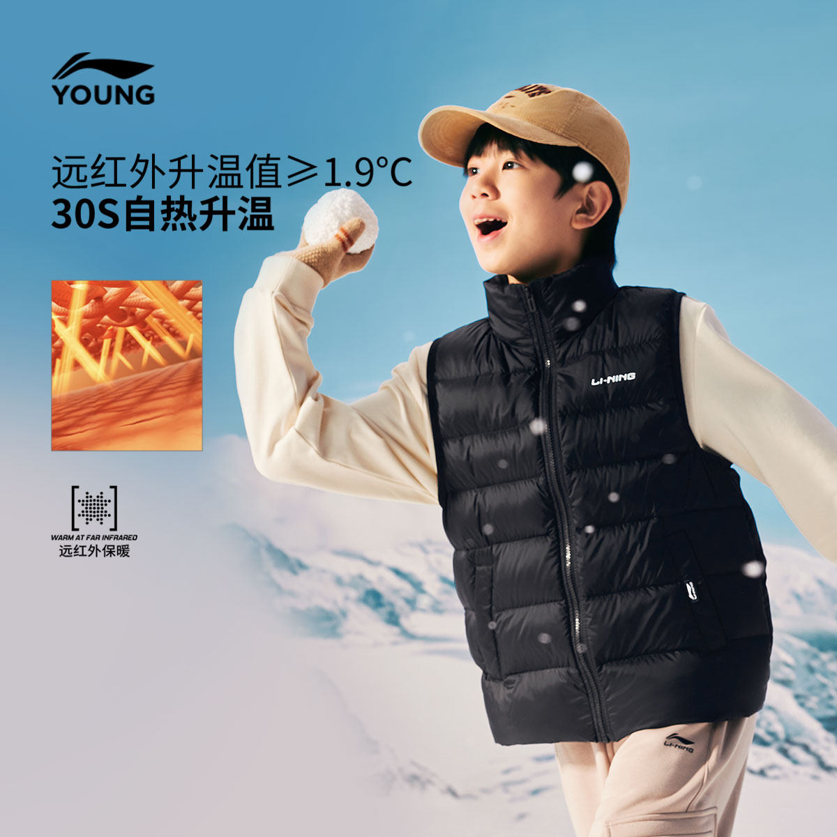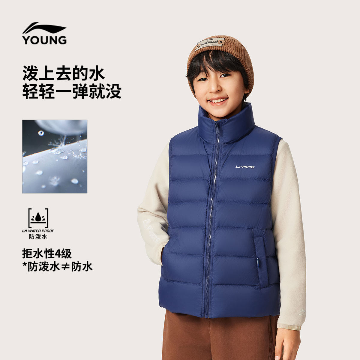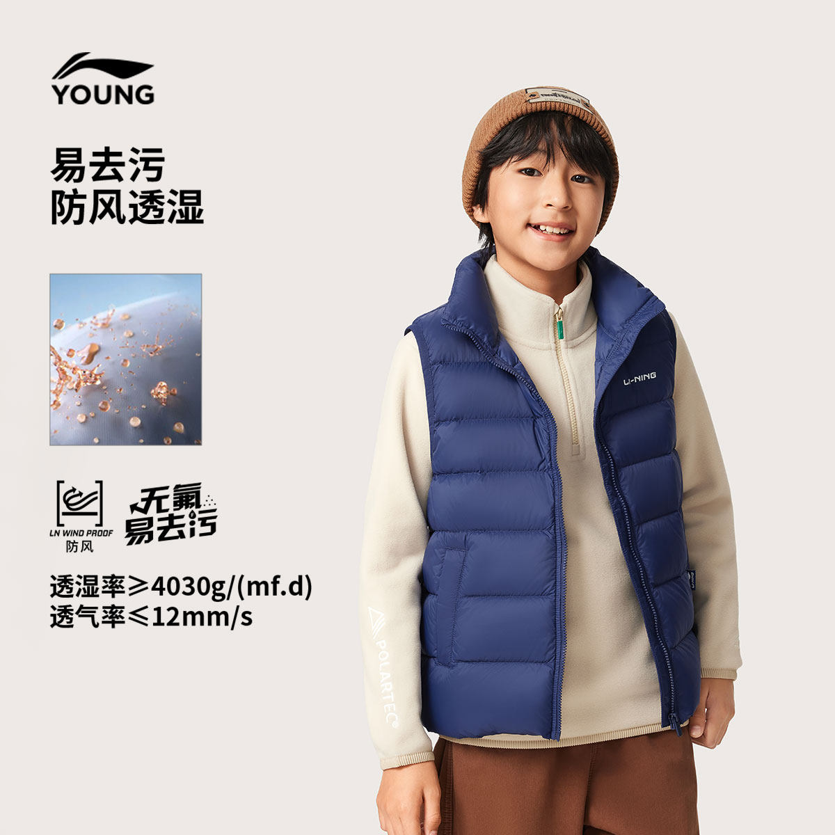李宁童装羽绒马甲男女大童新款保暖舒适运动上衣春季立领休闲童装