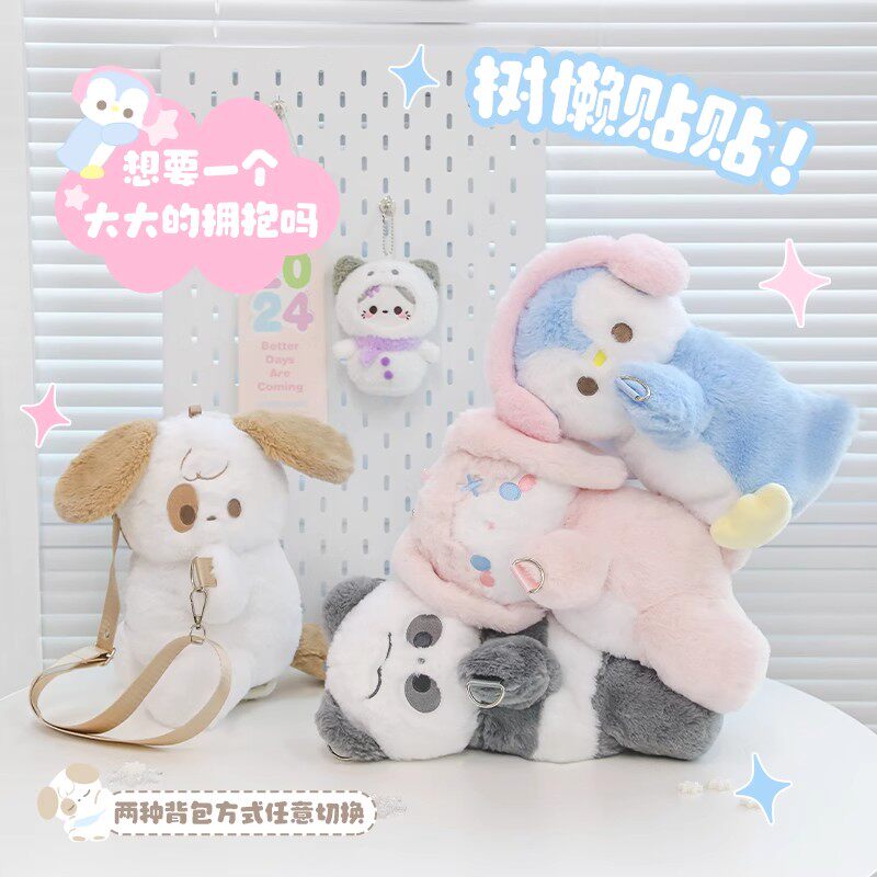 毛绒趴趴包可爱小猫小兔子背包卡通玩偶包2025新款斜挎包小熊猫趴趴包女孩生日礼物闺蜜礼物公仔包女款双肩包