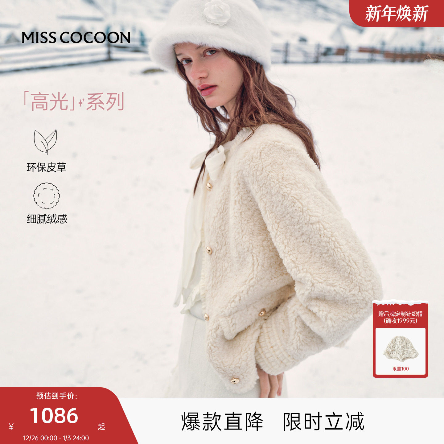 MISSCOCOON可可尼白色环保皮草女2025冬季新款小香风仿羊羔毛外套