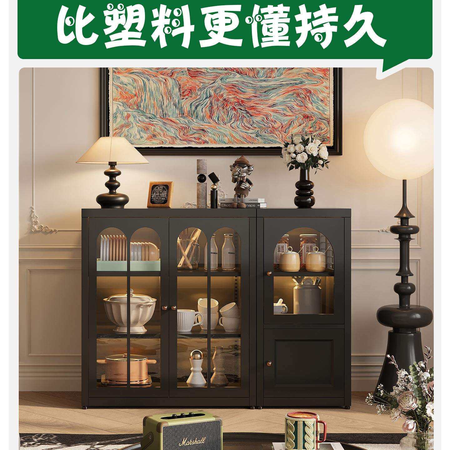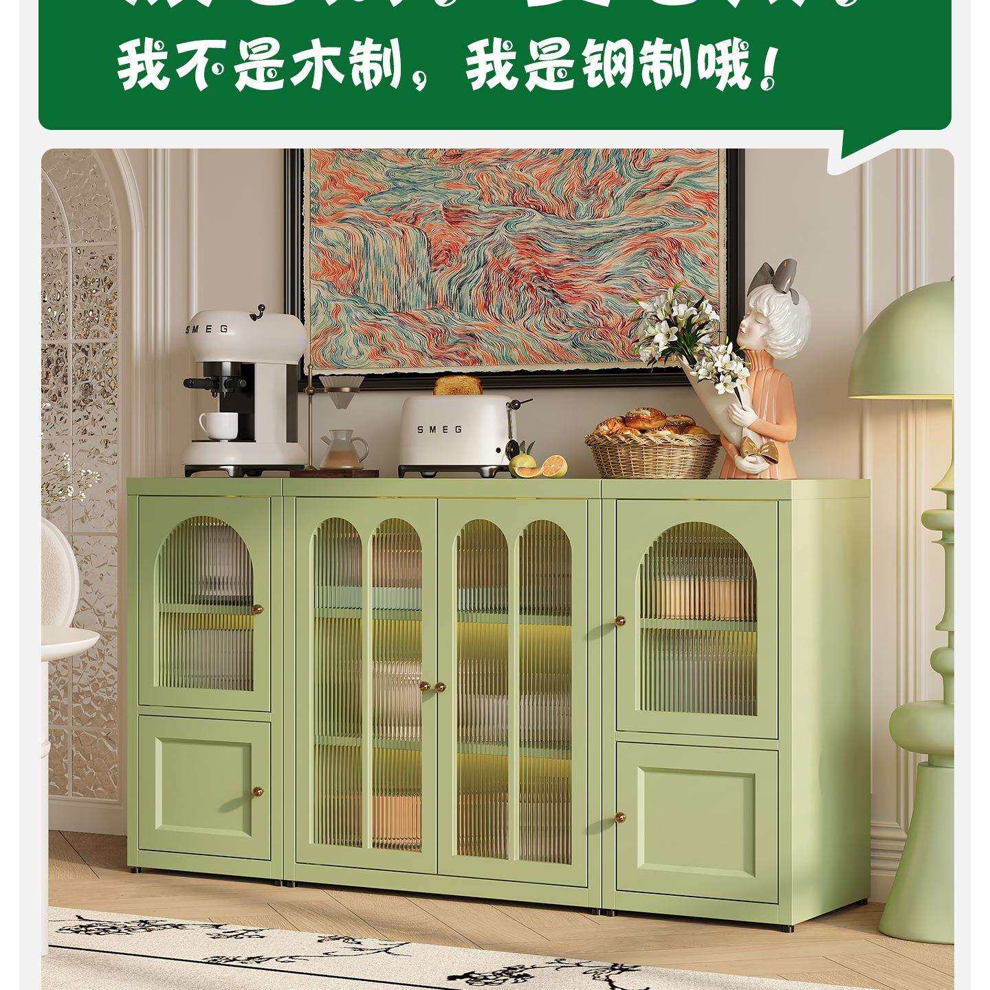 铁艺餐边柜边柜落地置物柜法式家用客厅储物柜铁皮柜靠墙收纳柜子
