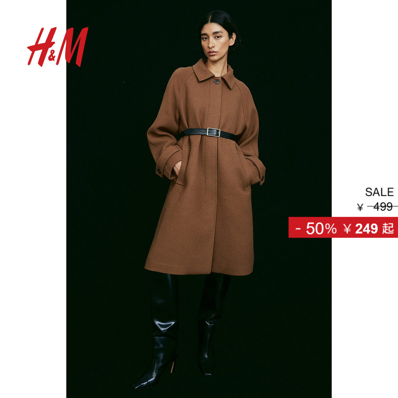 HM女装毛呢外套冬季时尚宽松简约时尚保暖及膝老钱风风衣1253843