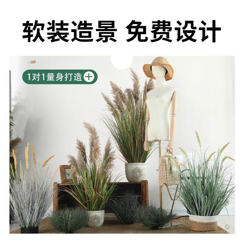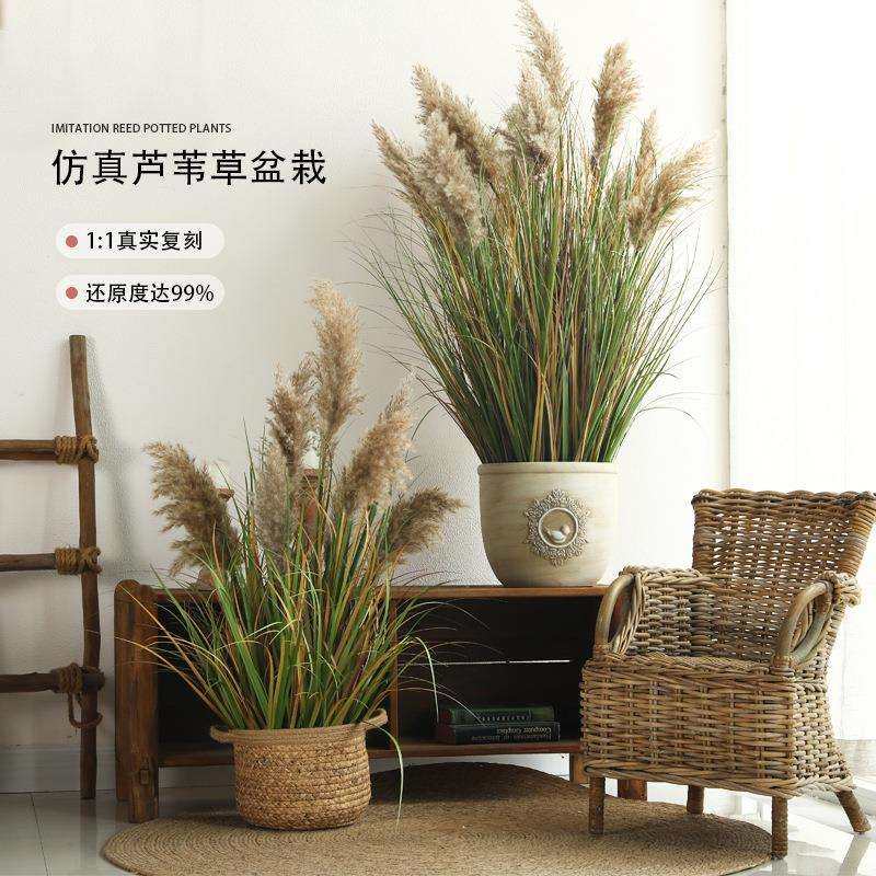 仿真植物盆栽芦苇草仿生绿植墙隔断室内橱窗门店落地装饰景观摆件