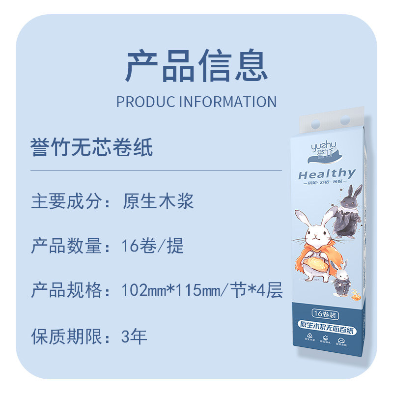 誉竹无芯卷筒纸卫生纸卷纸4层加厚家用实惠装纸巾厕纸擦手纸原生
