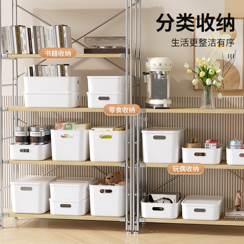 桌面收纳盒家用长方形化妆品杂物零食整理箱带盖储物筐塑料置物盒