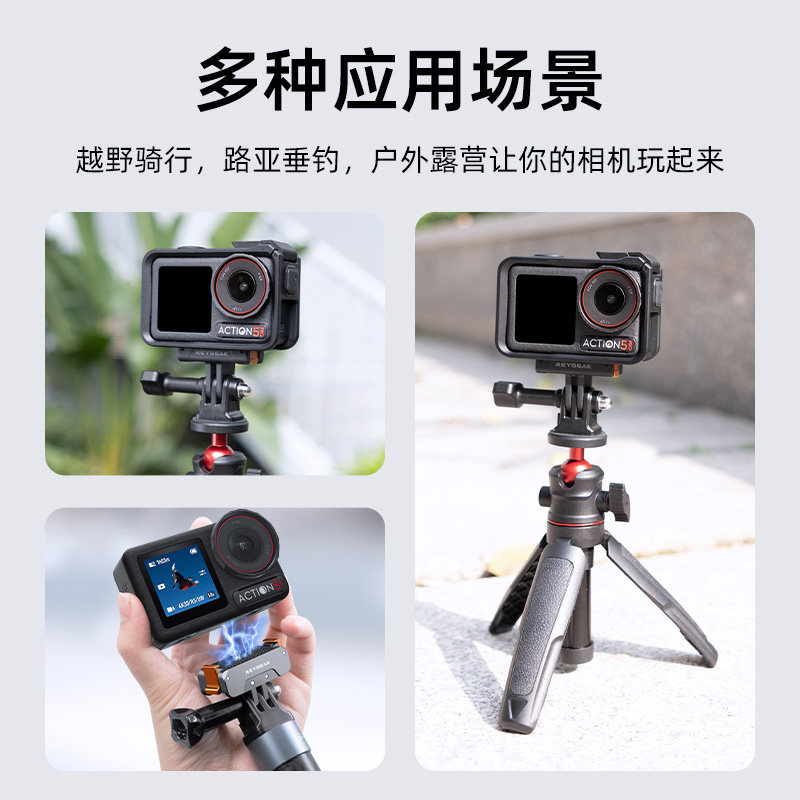 REYGEAK适用DJI大疆Action6/5Pro /4/3磁吸快装快拆底座转接配件OSMO 360灵眸运动相机骑行三脚支架兔笼保护