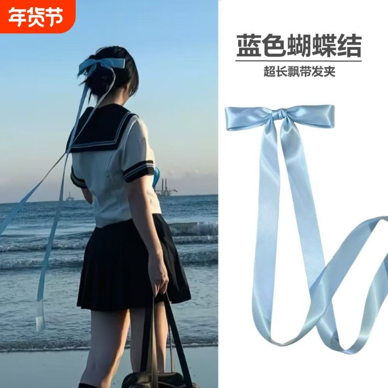 jk制服发夹红色超长飘带蝴蝶结发饰垂耳兔甜美法式芭蕾风顶夹头饰