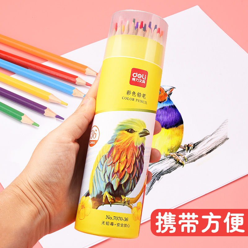 得力油性彩铅24色水溶性彩色铅笔36色小学生画画专用儿童幼儿园手绘涂色美术生48色专业彩铅画笔可擦12色水性