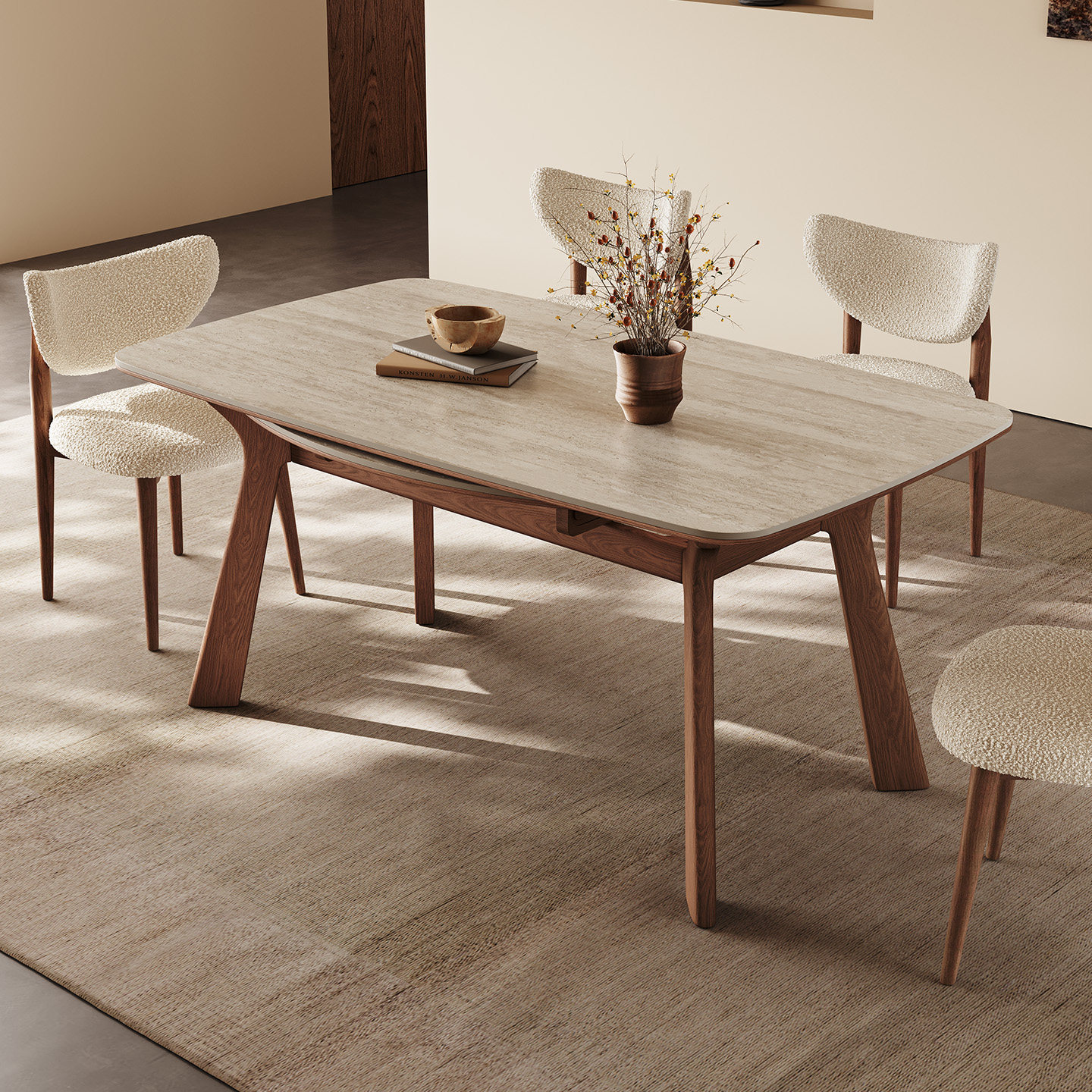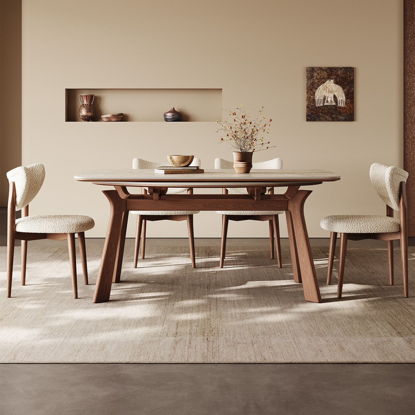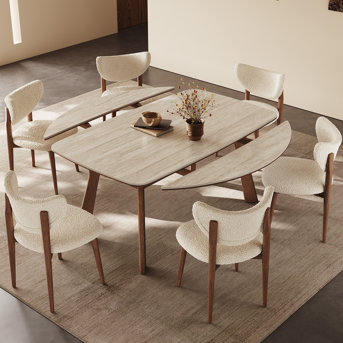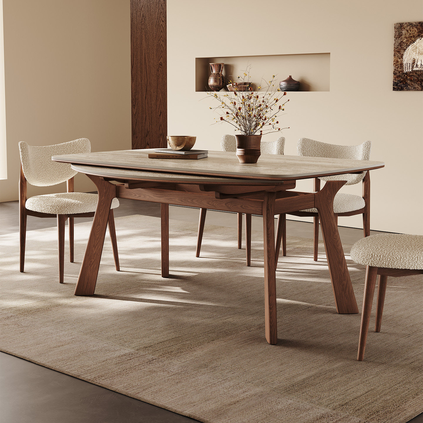 中古实木餐桌方圆两用可折叠饭桌白蜡木新款哑光洞石伸缩岩板餐桌