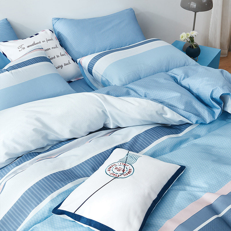 A类水洗棉双层纱四件套被罩非全棉纯棉床单人学生宿舍被套三件套