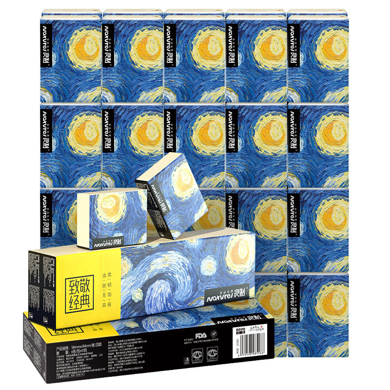 手帕纸蓝漂四层加厚抽纸家用实惠装柔软亲肤面巾纸整箱装100包