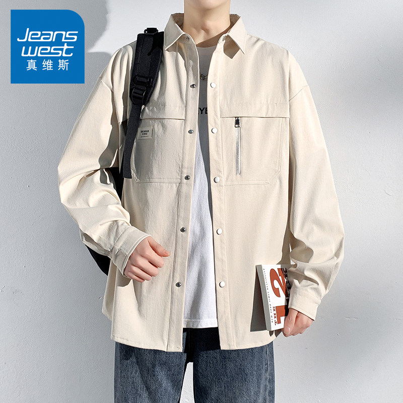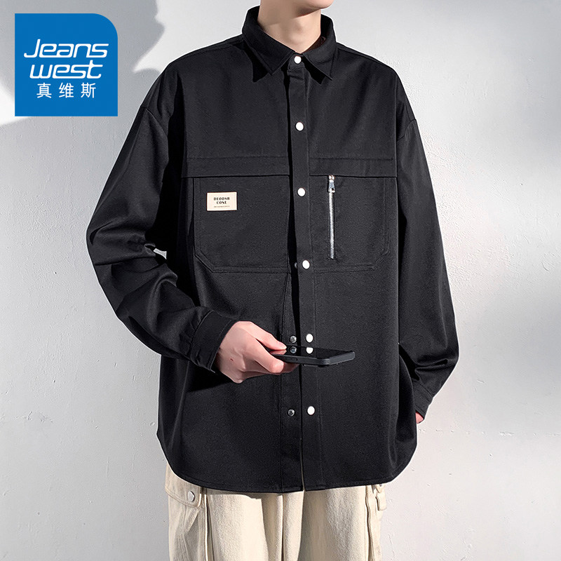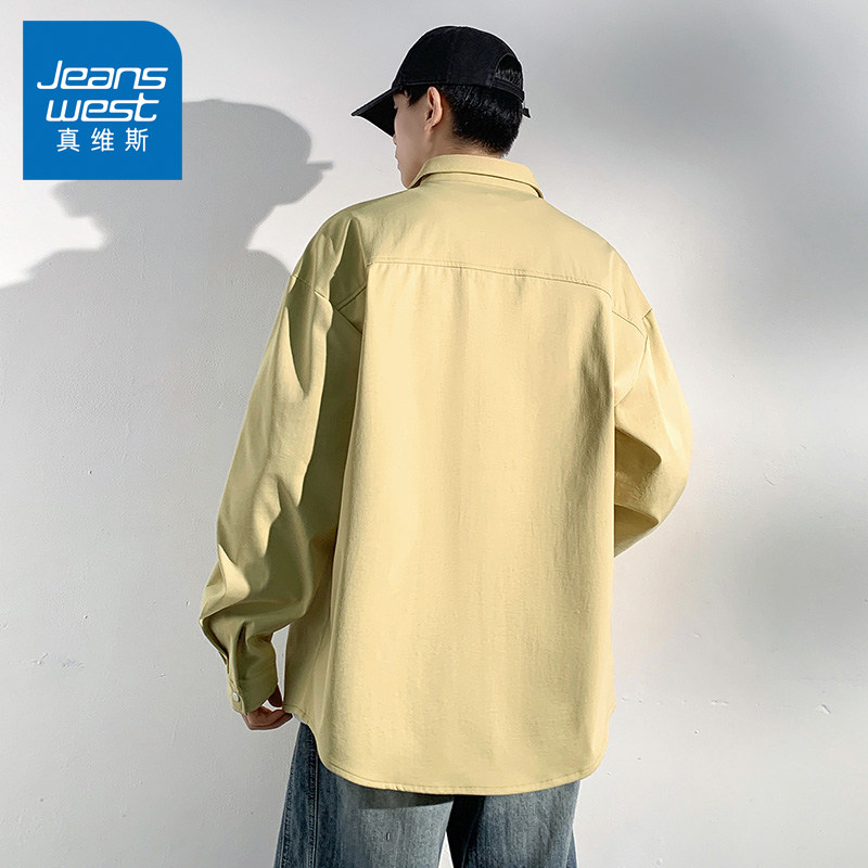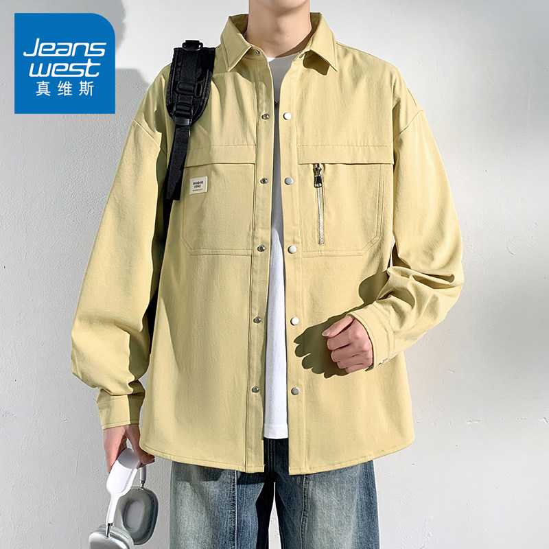 N5真维斯男士长袖衬衫2025秋季新款美式潮流宽松工装男生休闲衬衣