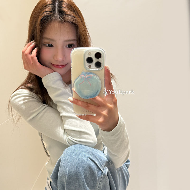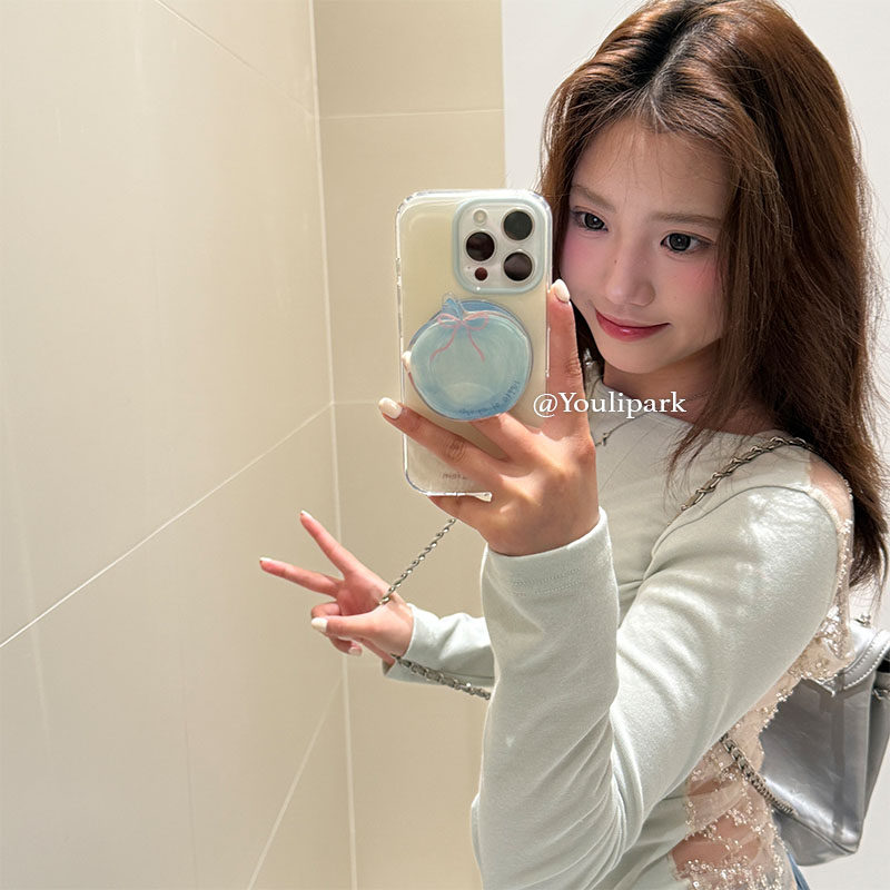由里公园ins小众少女蝴蝶结蓝苹果磁吸支架15适用17pro苹果17ProMax手机壳iPhone16全包17新款14Promax保护套