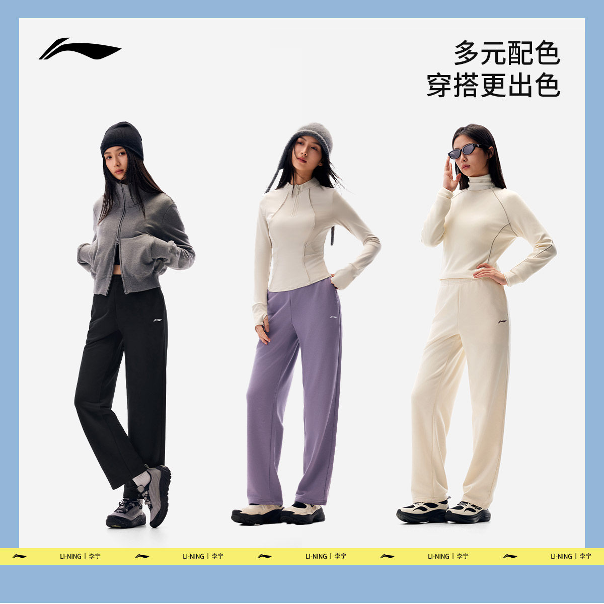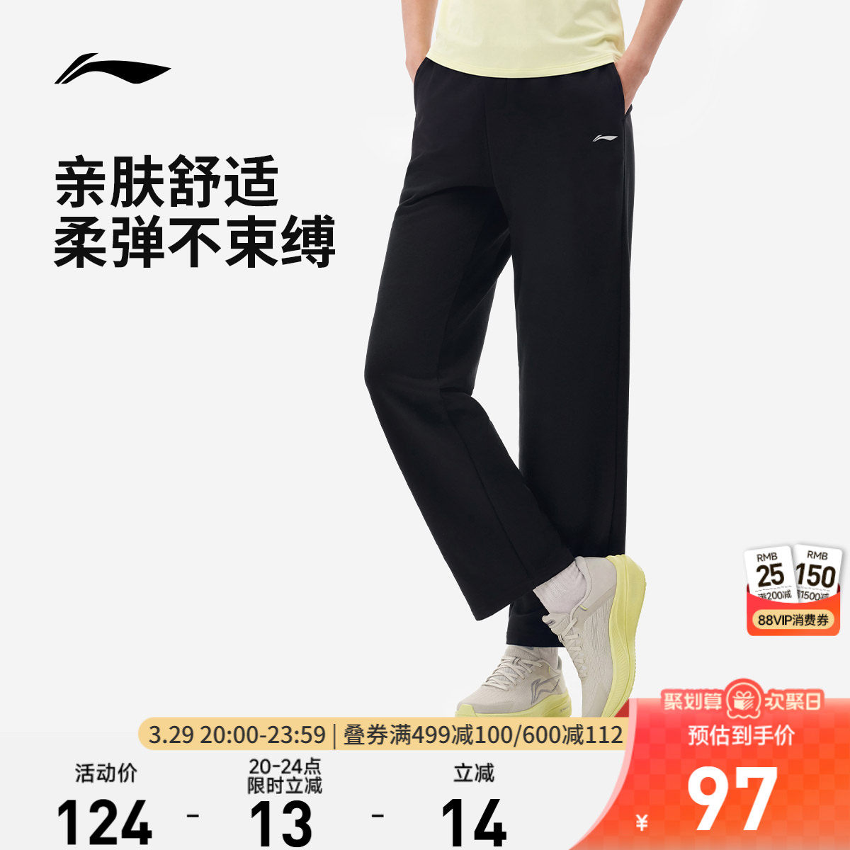 李宁卫裤女士新款健身跑步长裤春季直筒裤针织裤子运动裤休闲裤