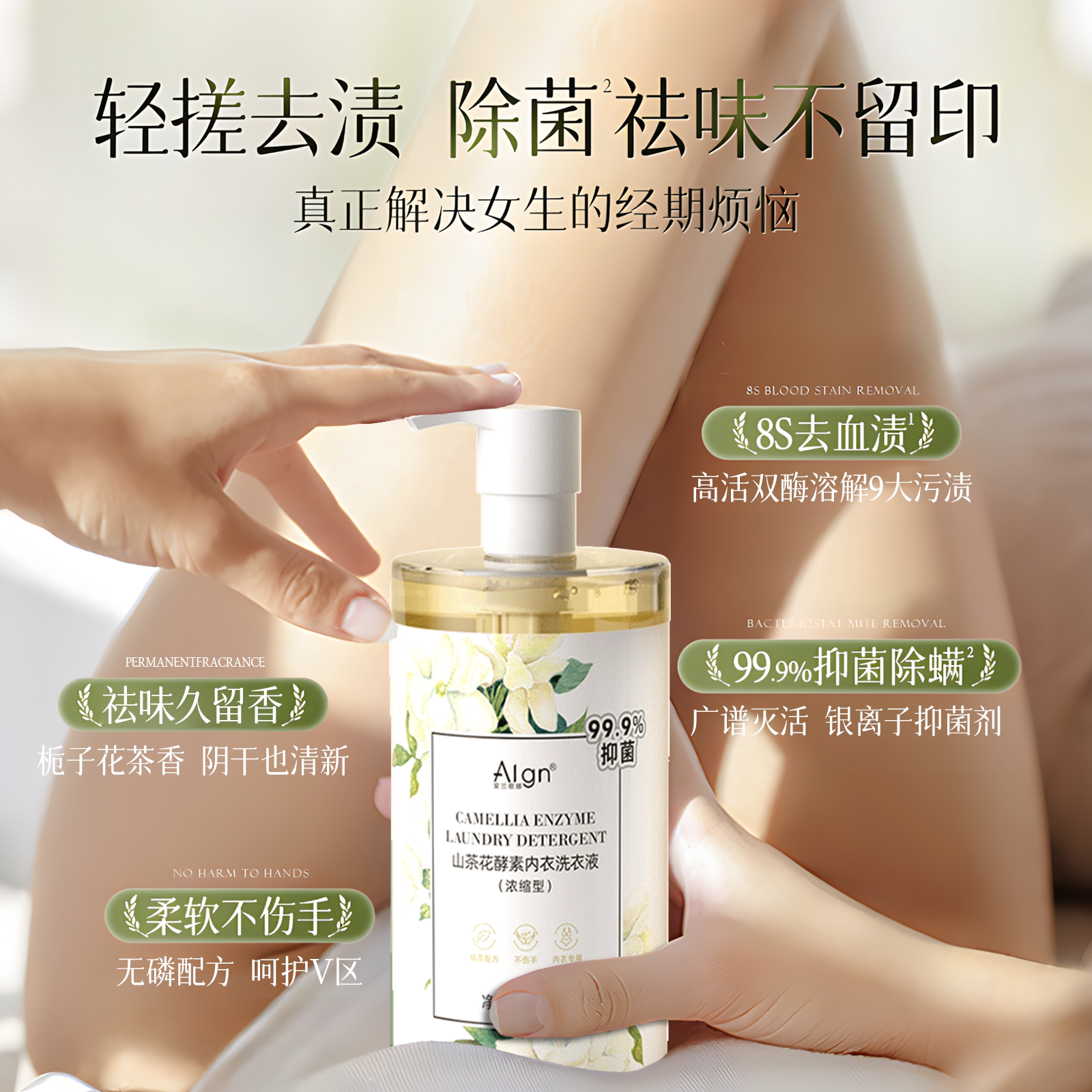 植护内衣洗衣液800g山茶花除菌除螨抑菌去血渍去黄专洗内裤清洗剂