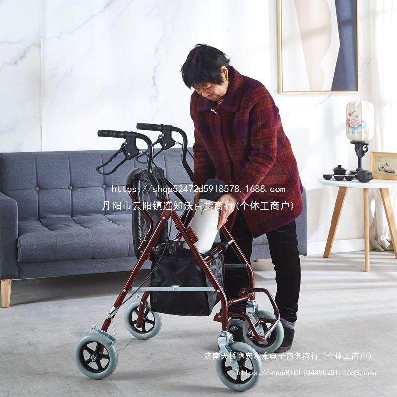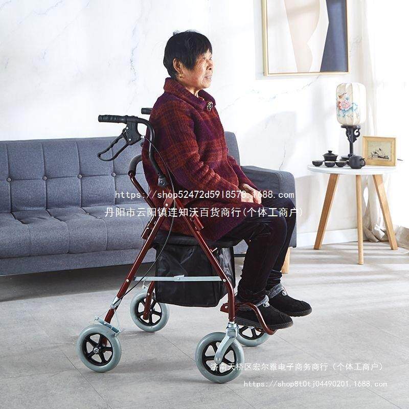 老年代步车老人手推车可坐四轮买菜购物拉车折叠座椅助步小拉车铁