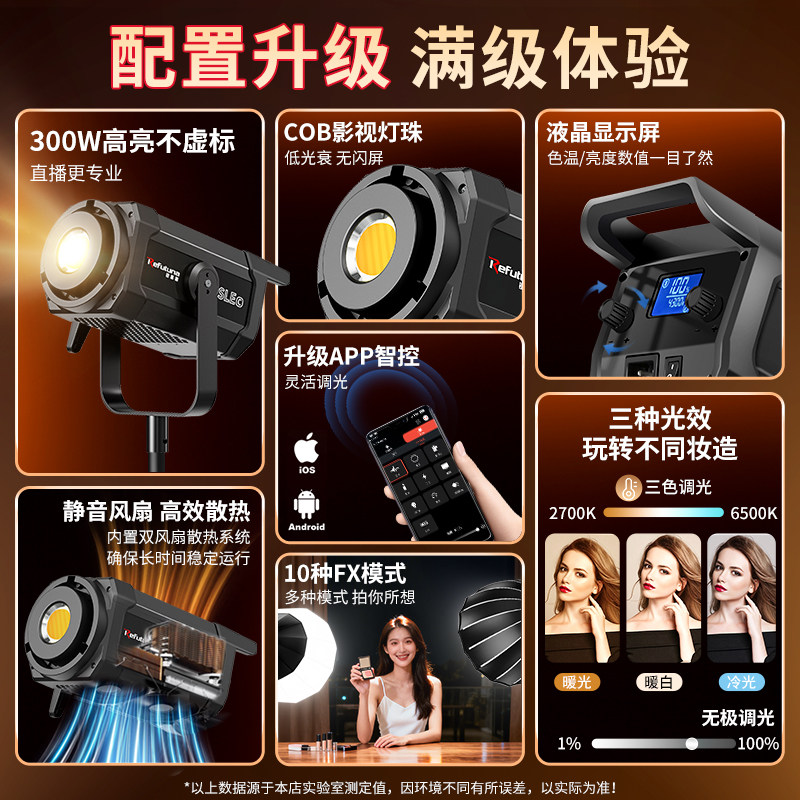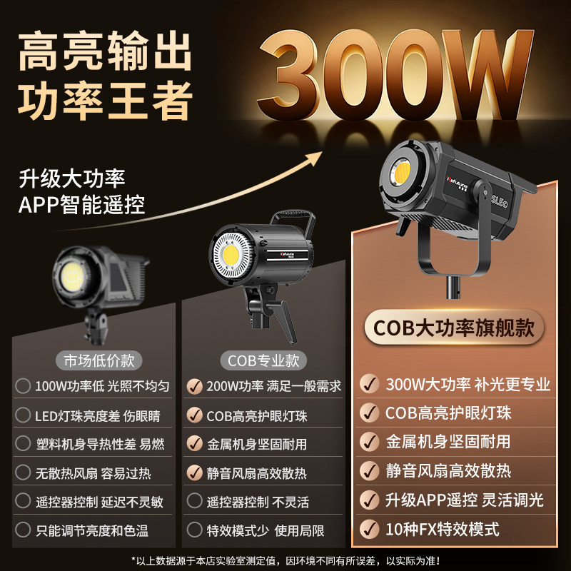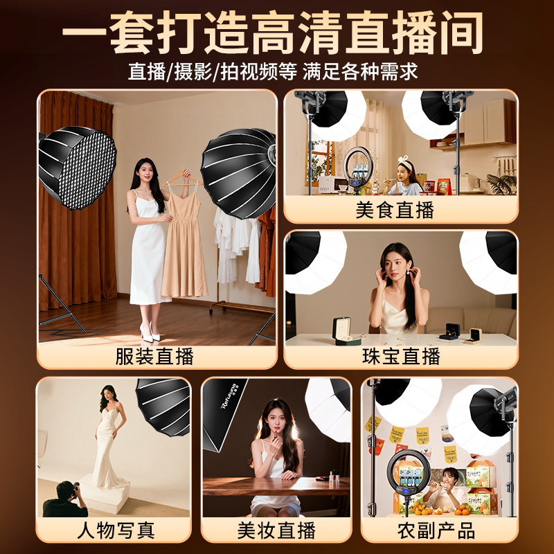 300W直播补光灯专业COB主播专用直播间拍摄打光摄影灯LED美颜球形拍照室内拍视频深抛影棚服装影视APP常亮灯