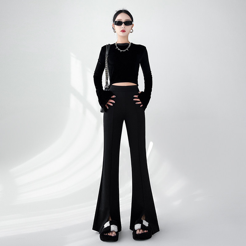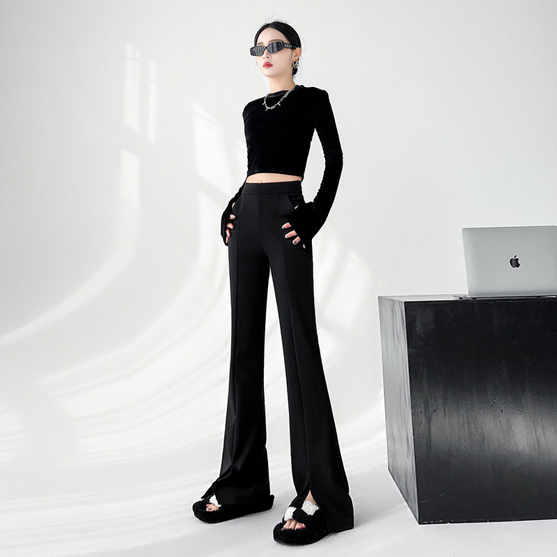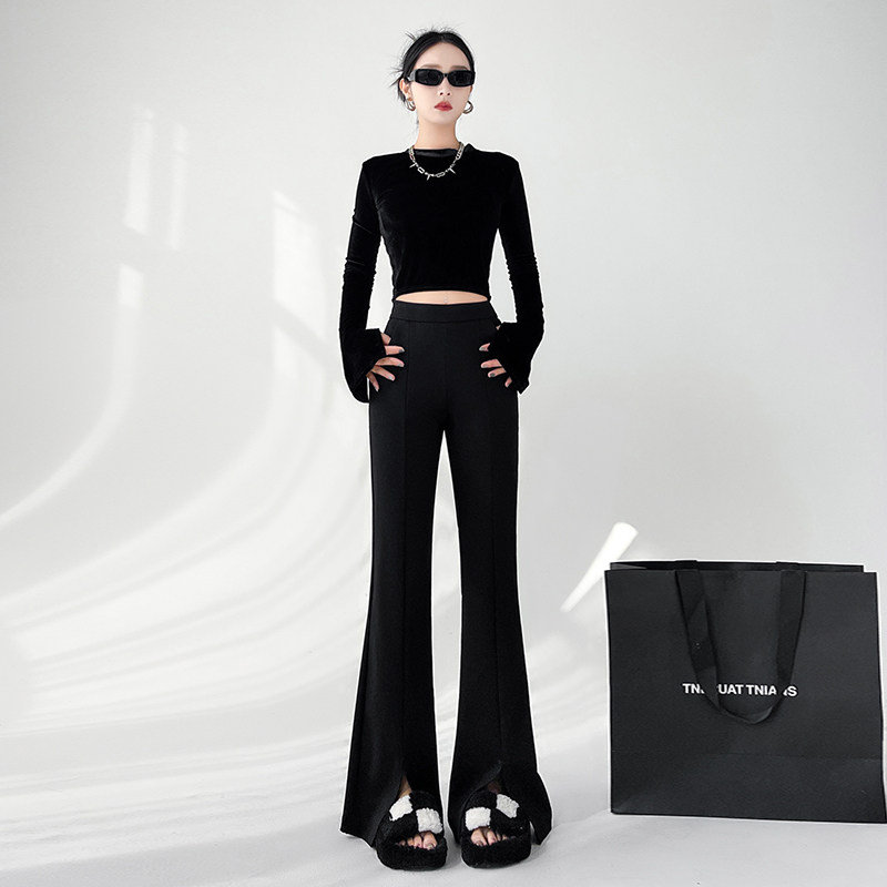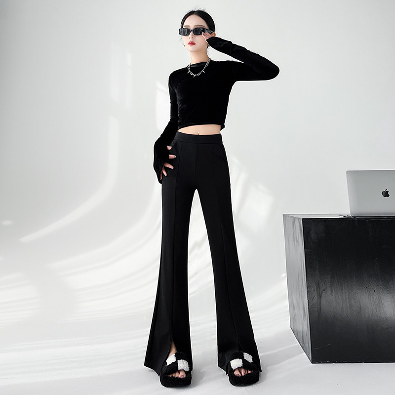 NOME(服饰)2025春秋款女显瘦黑色休闲直筒加长高腰阔腿喇叭裤子