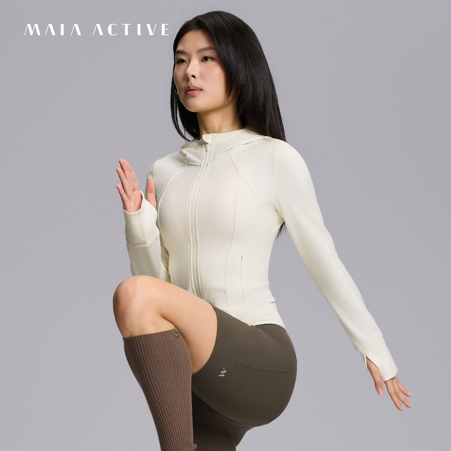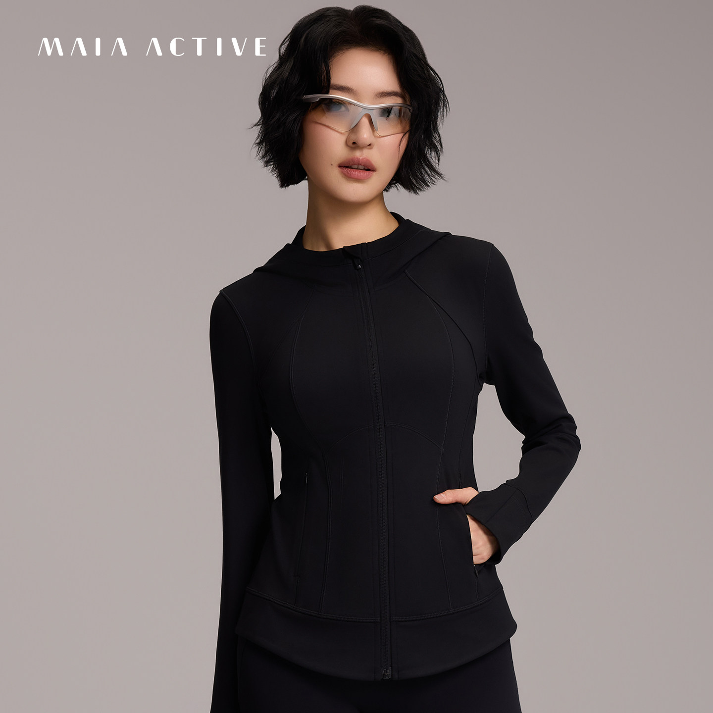 线雕夹克双C版型紧身上衣连帽健身运动瑜伽外套MAIAACTIVE 61JK25