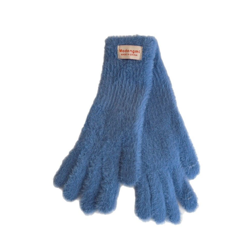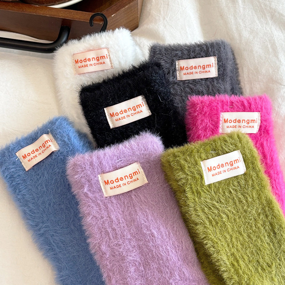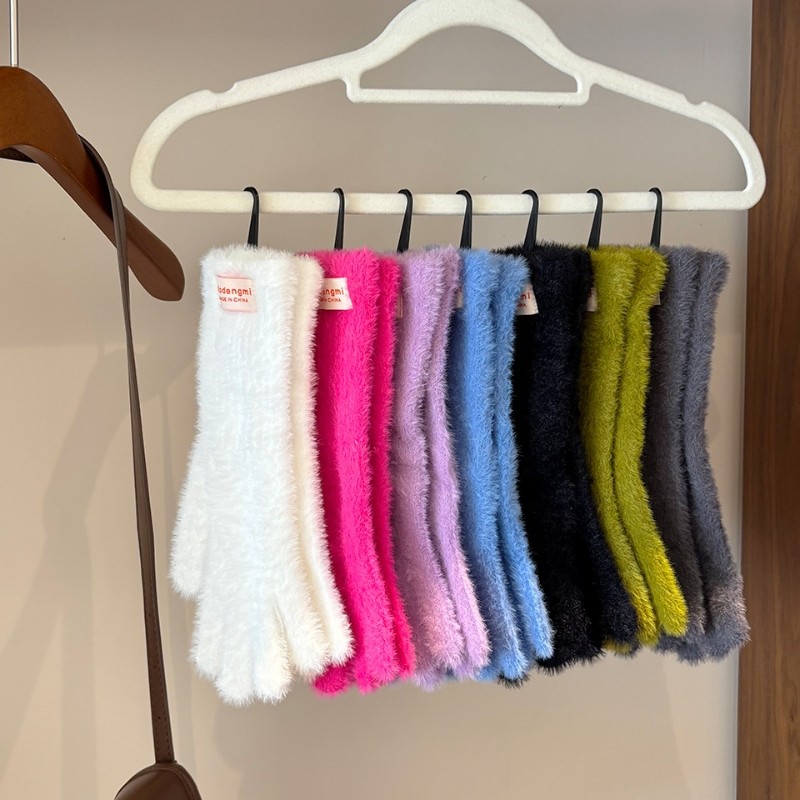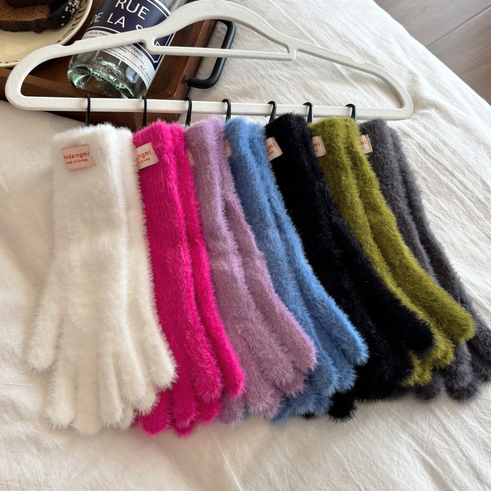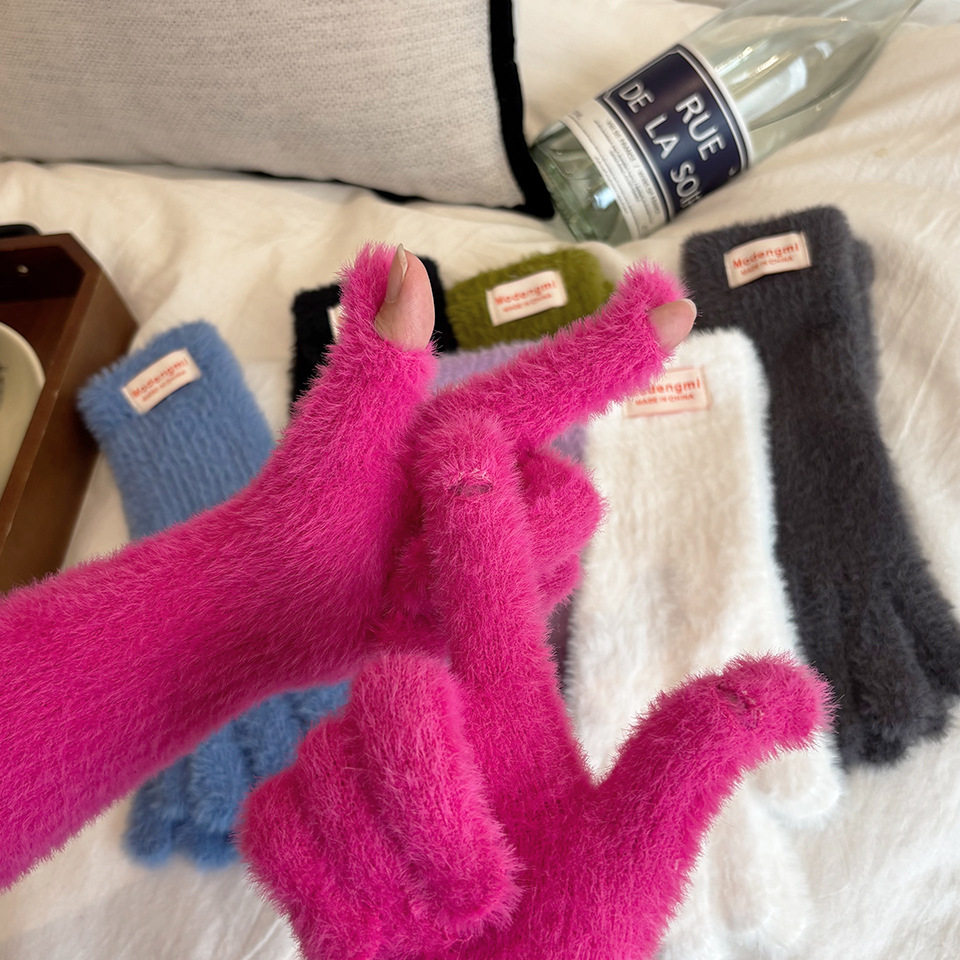 韩系ins风纯色简约毛绒手套女秋冬季防寒保暖加长款漏指触屏个性