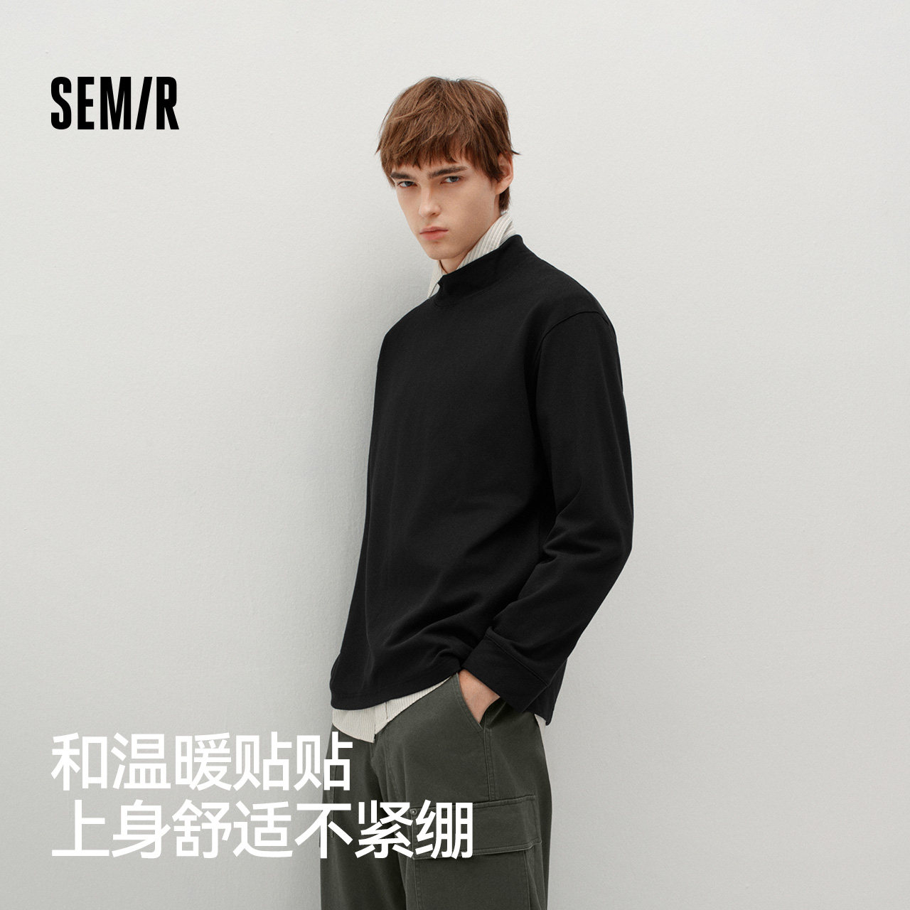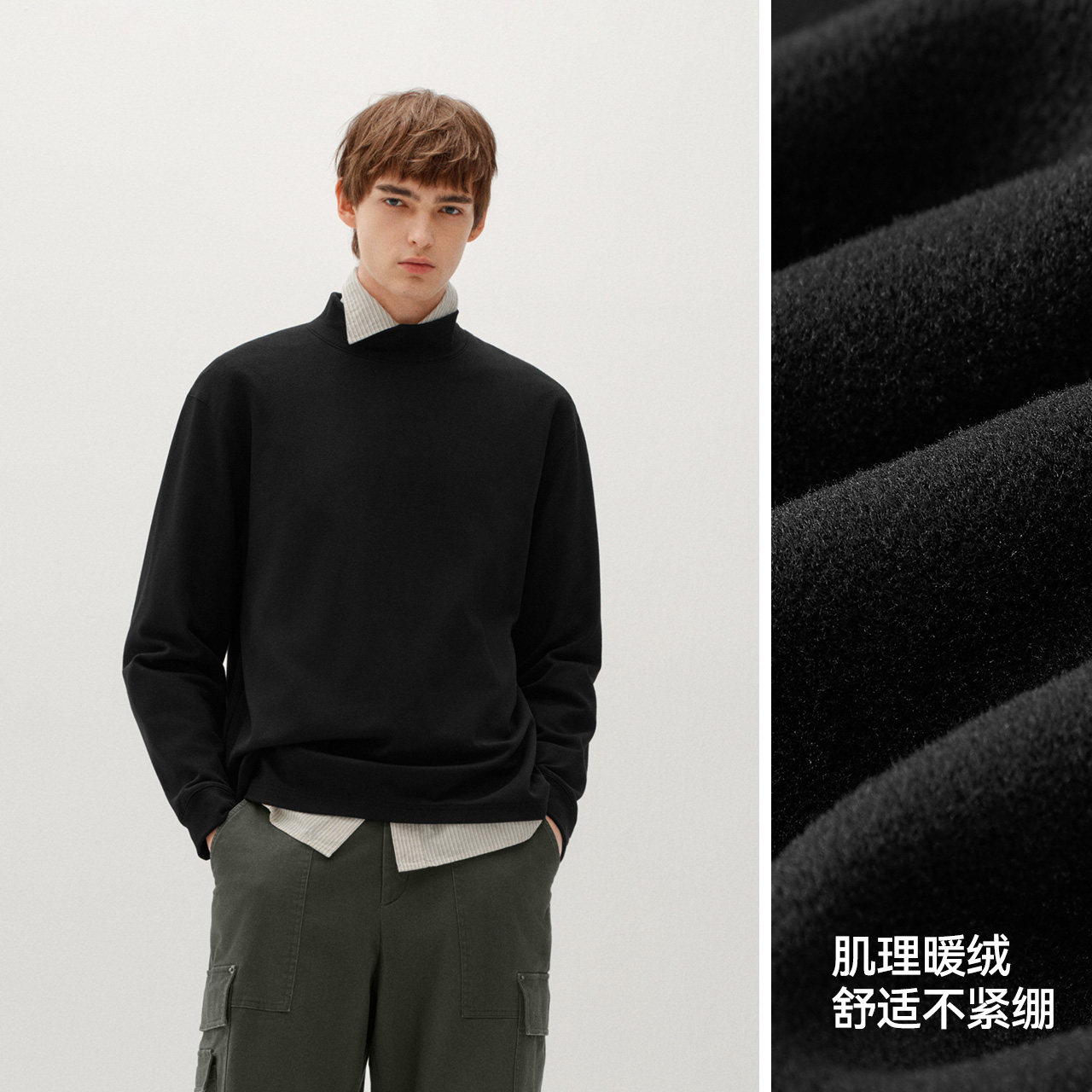 商场同款|森马长袖T恤男冬半高领打底衫2025新款基础百搭黑色内搭