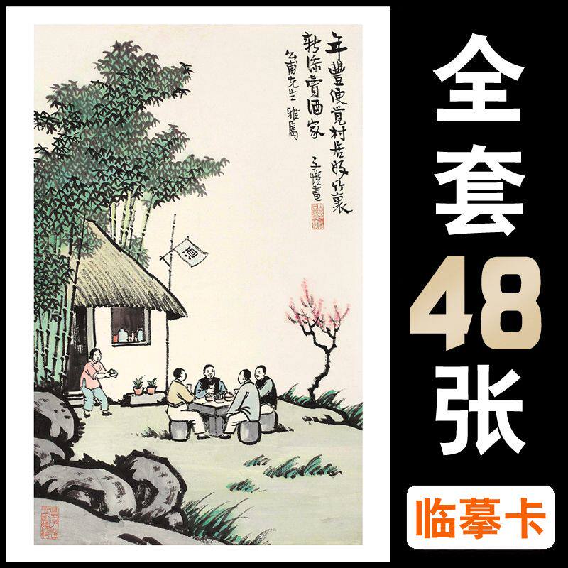 国画名家生活趣味小品美术临摹卡少儿成人绘画培训教学全套48张