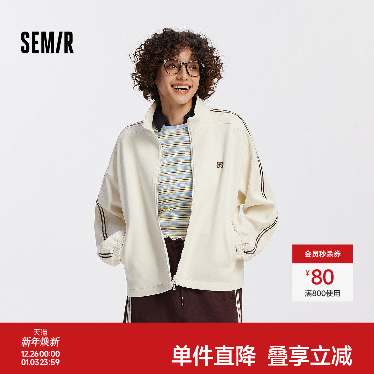 [商场同款]森马外套女抽绳学院风2025新款秋季立领肌理夹克运动风