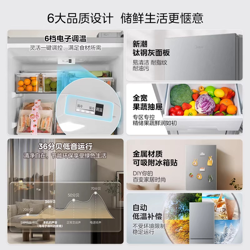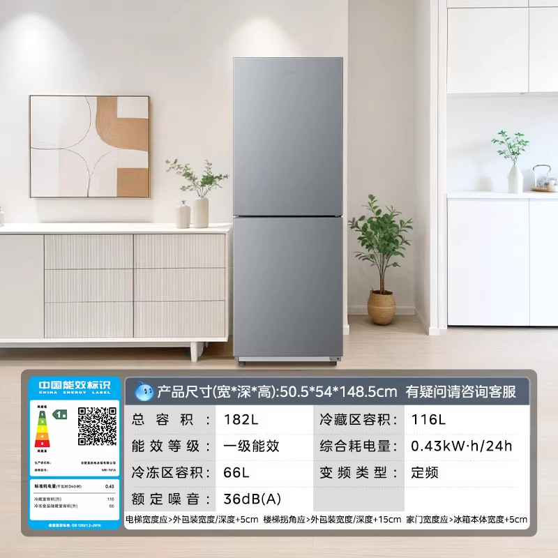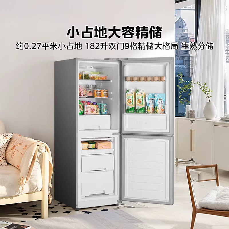 美的195/180+超薄双开两门家用小户型出租屋冰箱节能省电风冷无霜