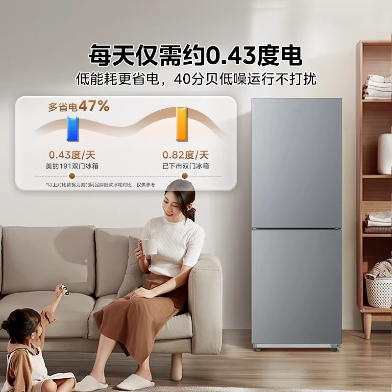 新品美的191冰箱租房宿舍节能低噪冷冻冷藏小型家用两门一级能效