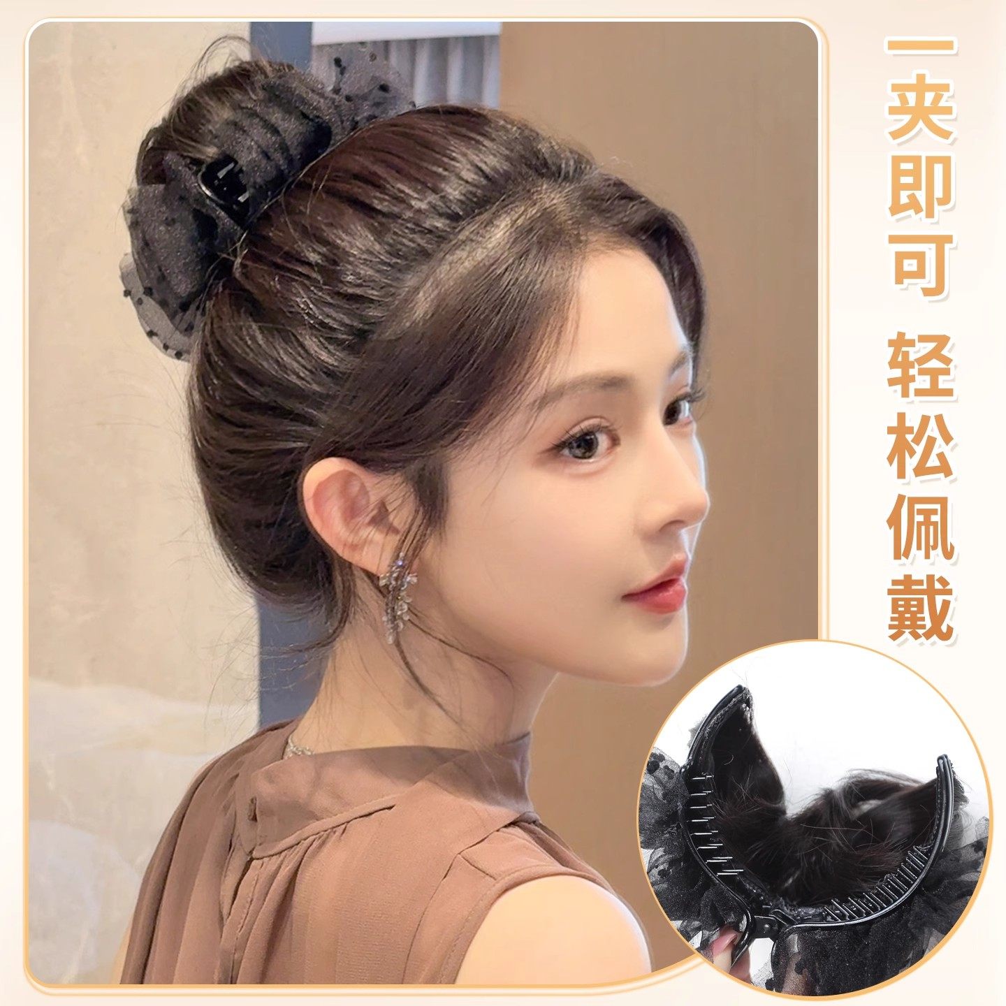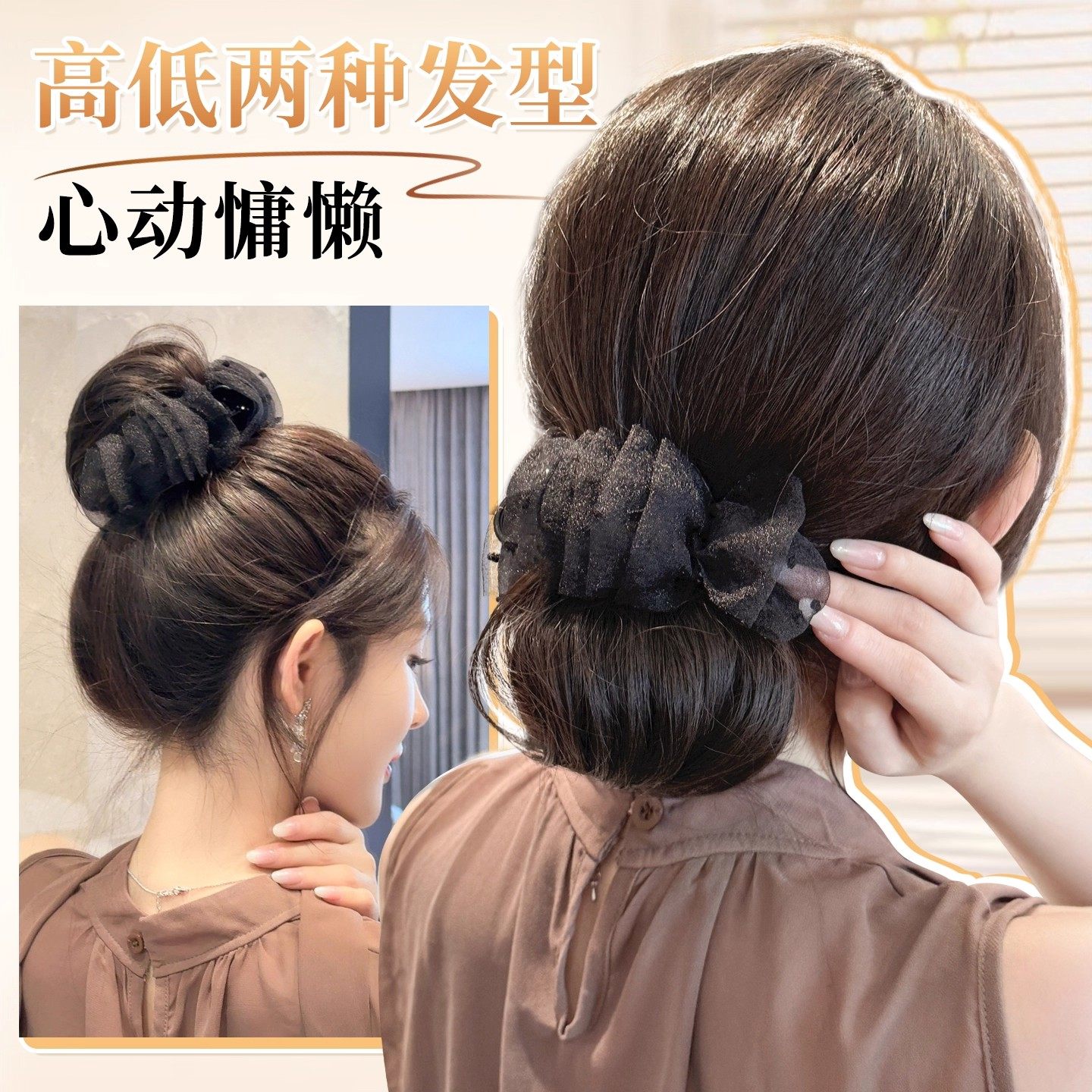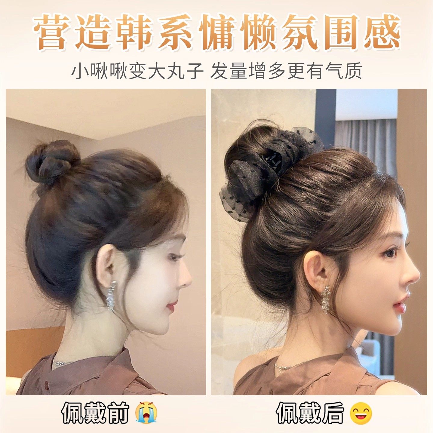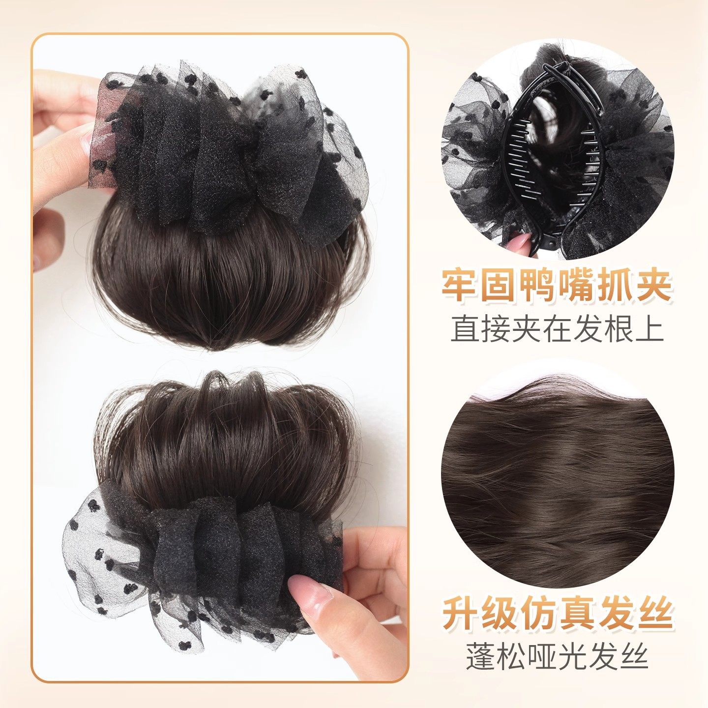 网纱抓夹丸子头假发女氛围感花苞头蓬松增发盘发神器仿真发饰发包