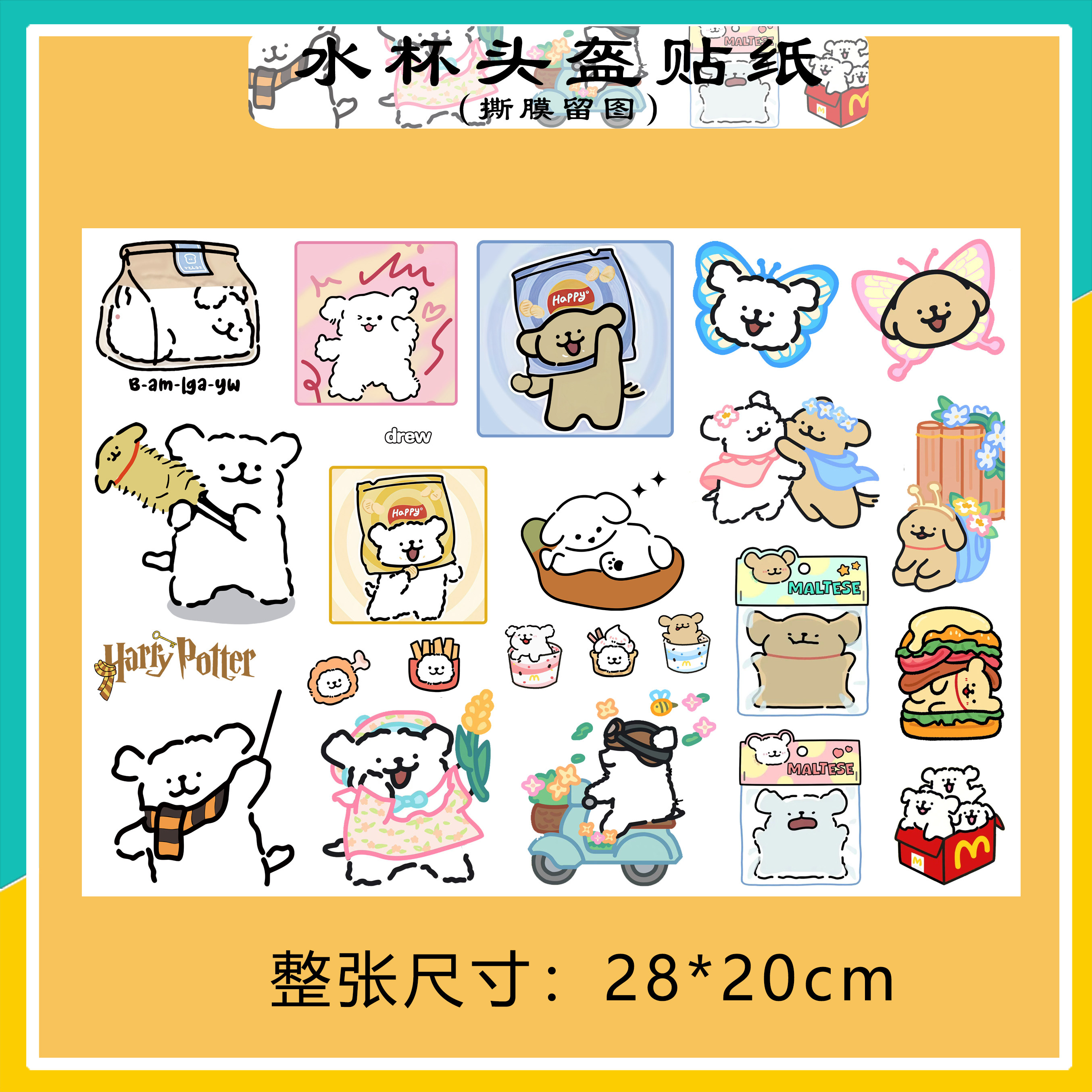 线条小狗卡通立体防水保温水杯头盔装饰贴手机壳充电宝自粘贴纸
