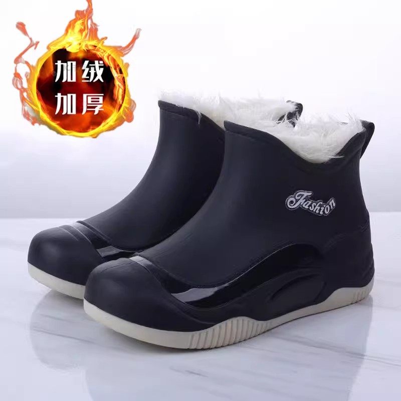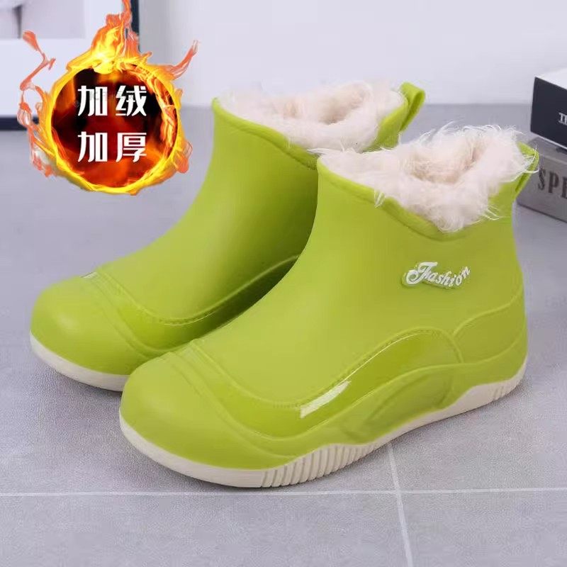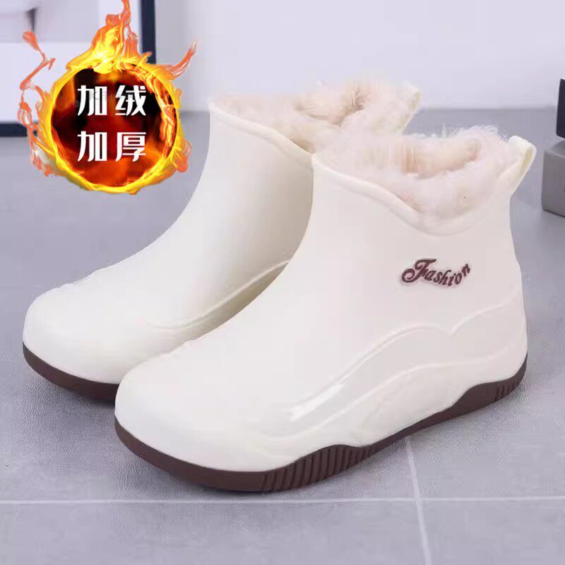 女式雨鞋加绒时尚水鞋防水厨房防滑胶鞋厚底轻便短筒雨靴买菜户外