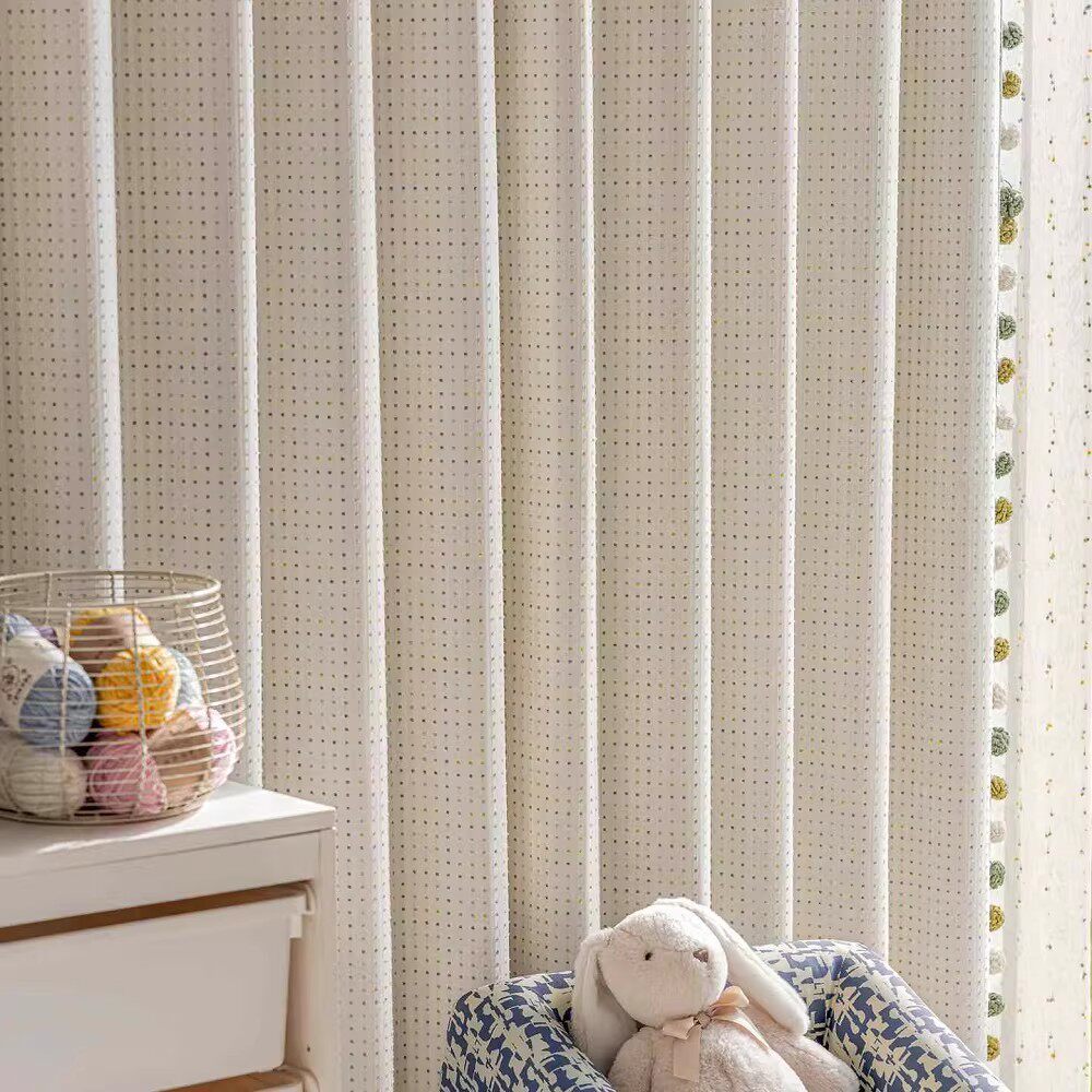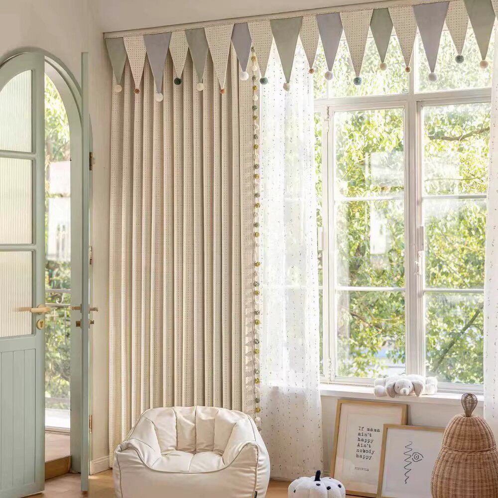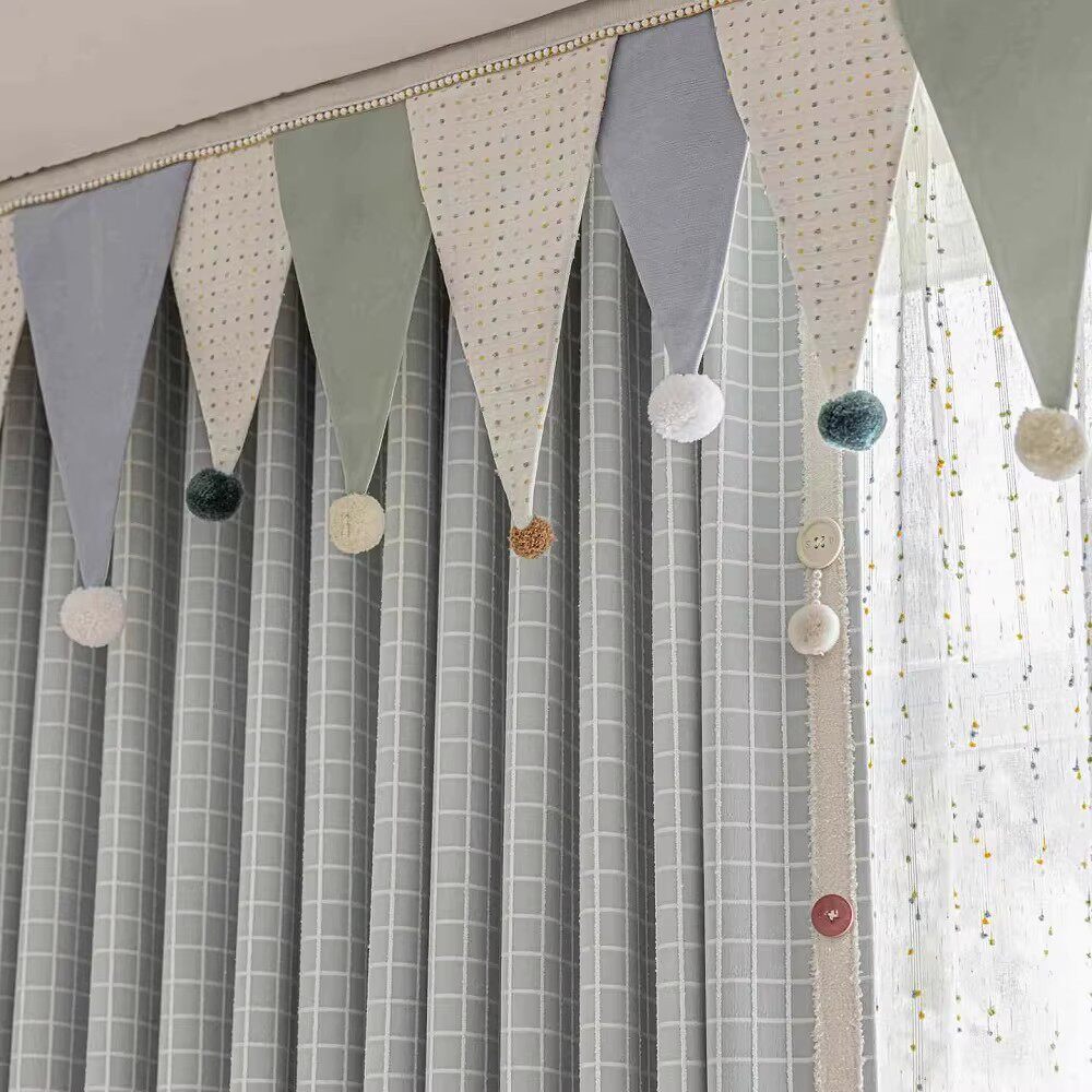 奶油风儿童房防漏光窗帘帘头三角形窗幔飘窗幔头自粘魔术贴免安装