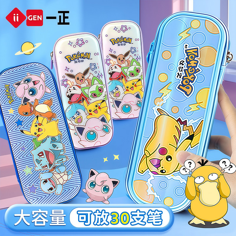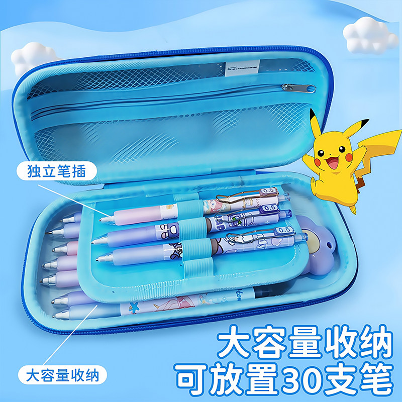 一正宝可梦3D光栅笔盒大容量可爱文具盒EVA皮卡丘学生铅笔盒文具
